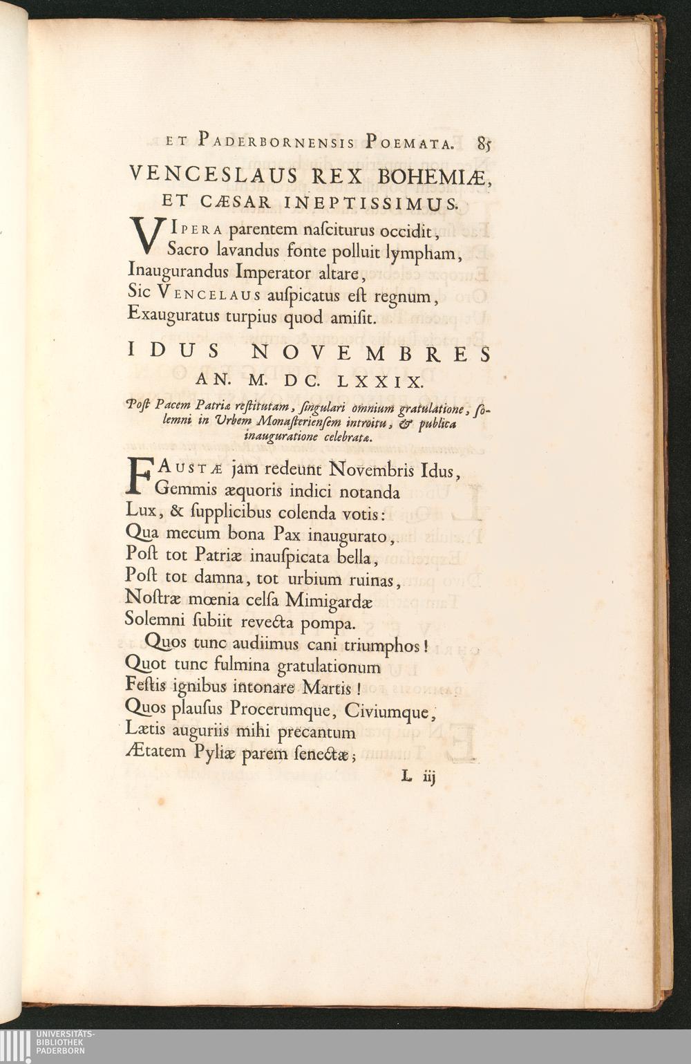 Venceslaus Rex Bohemiae, et Caesar Ineptissimus. Idus Novembres An. M. DC. LXXIX[...]