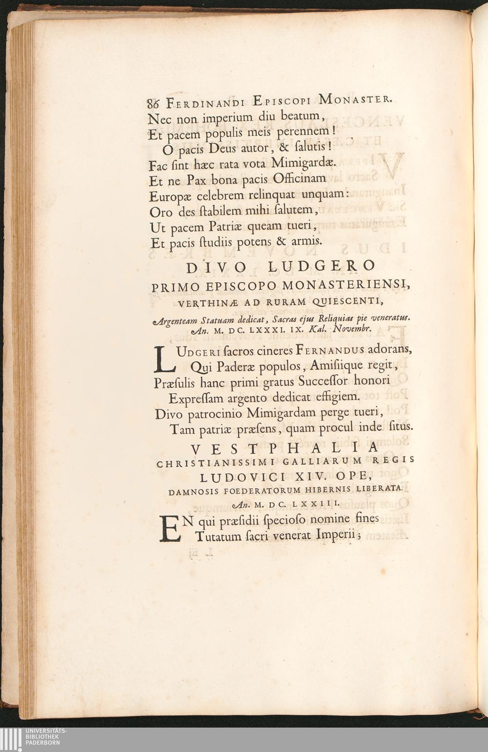 Poemata Ferdinandi Episcopi Monasteriensis Et Paderbornensis, S. R. I. Principis, Comitis Pyrmontani, Liberi Baronis De Furstenberg