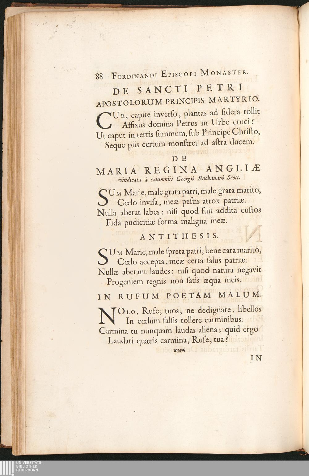 De Sancti Petri Apostolorum Principis Martyrio. De Maria Regina Angliae ... Antithesis.[...]