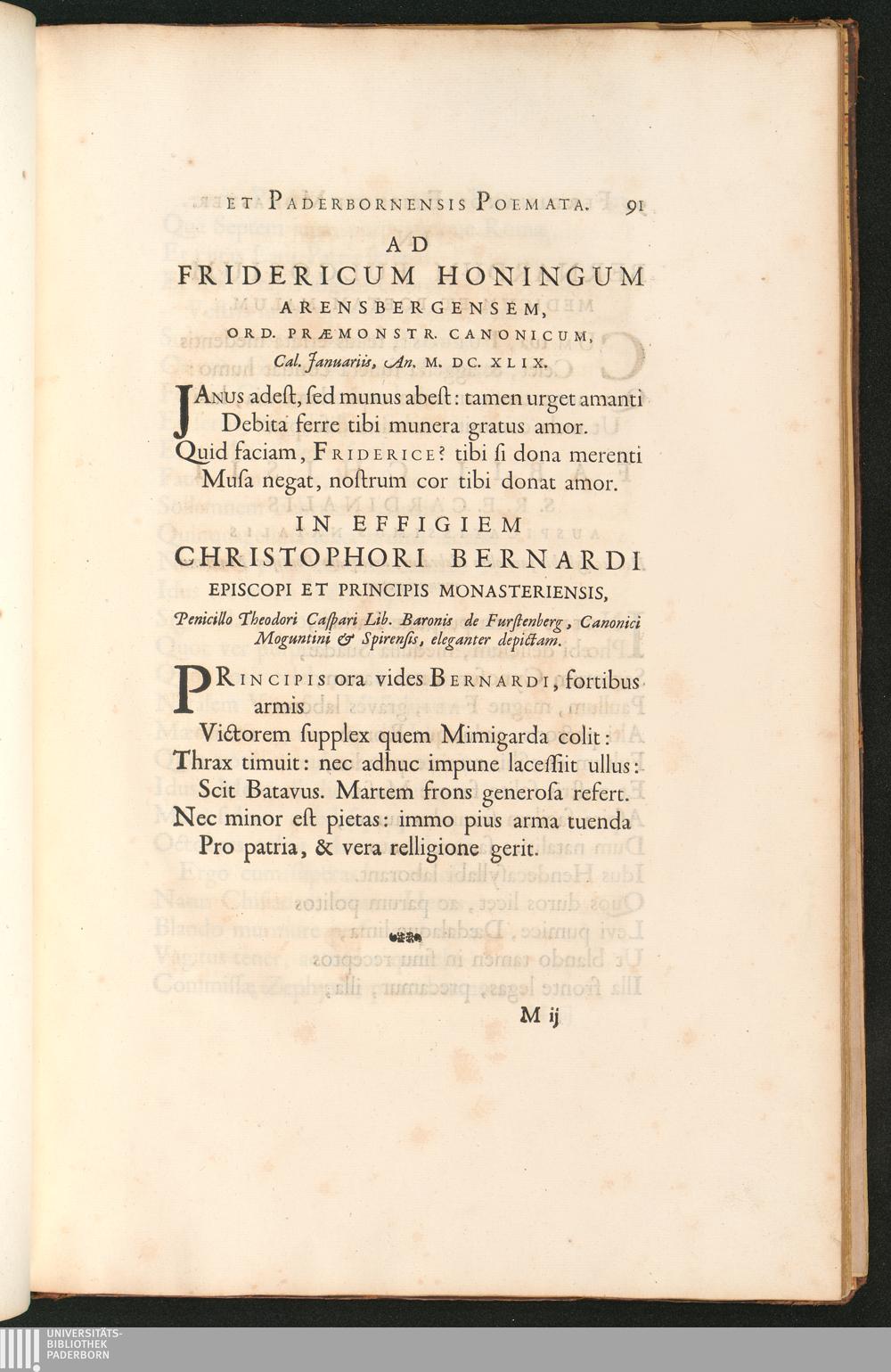 Ad Fridericum Honingum Arensbergensem, ...In Effigiem Christophori Bernardi Episcopi[...]