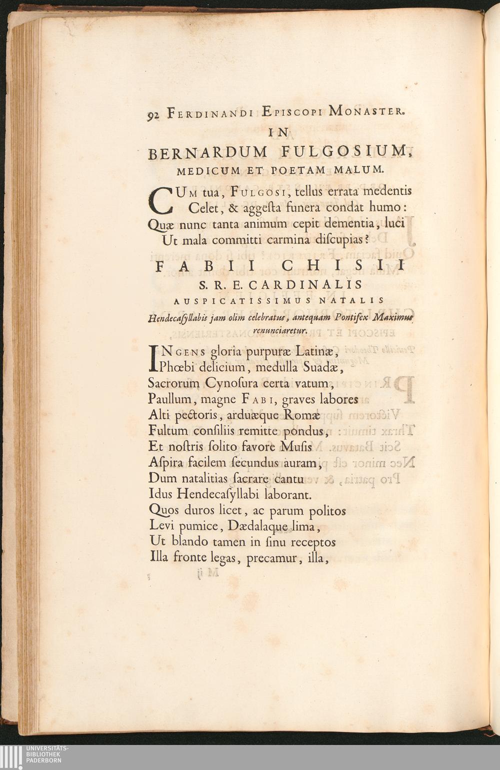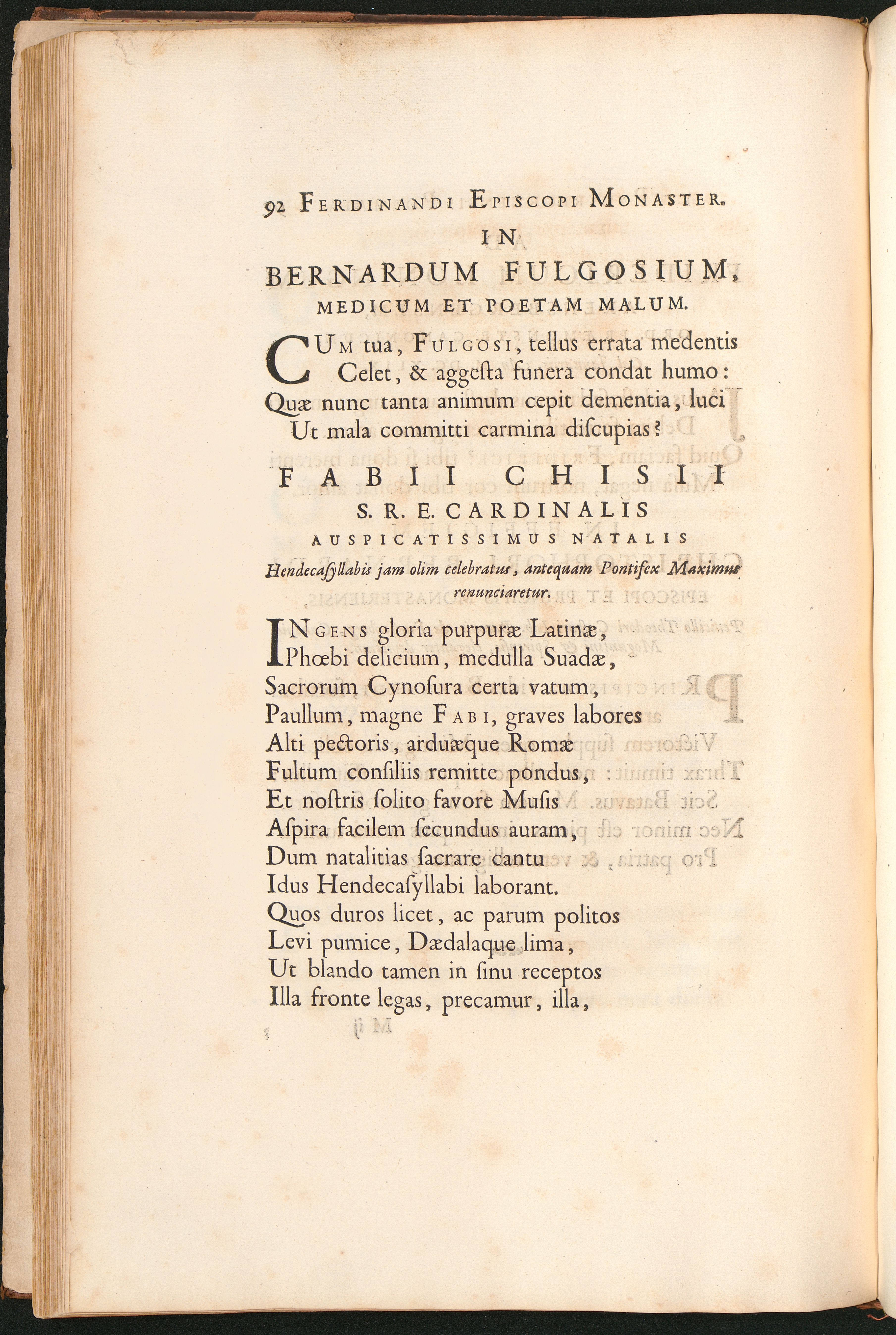 In Bernardum Fulgosium, Medicum et Poetam Malum. Fabii Chisii S.R.E. Cardinalis [...]