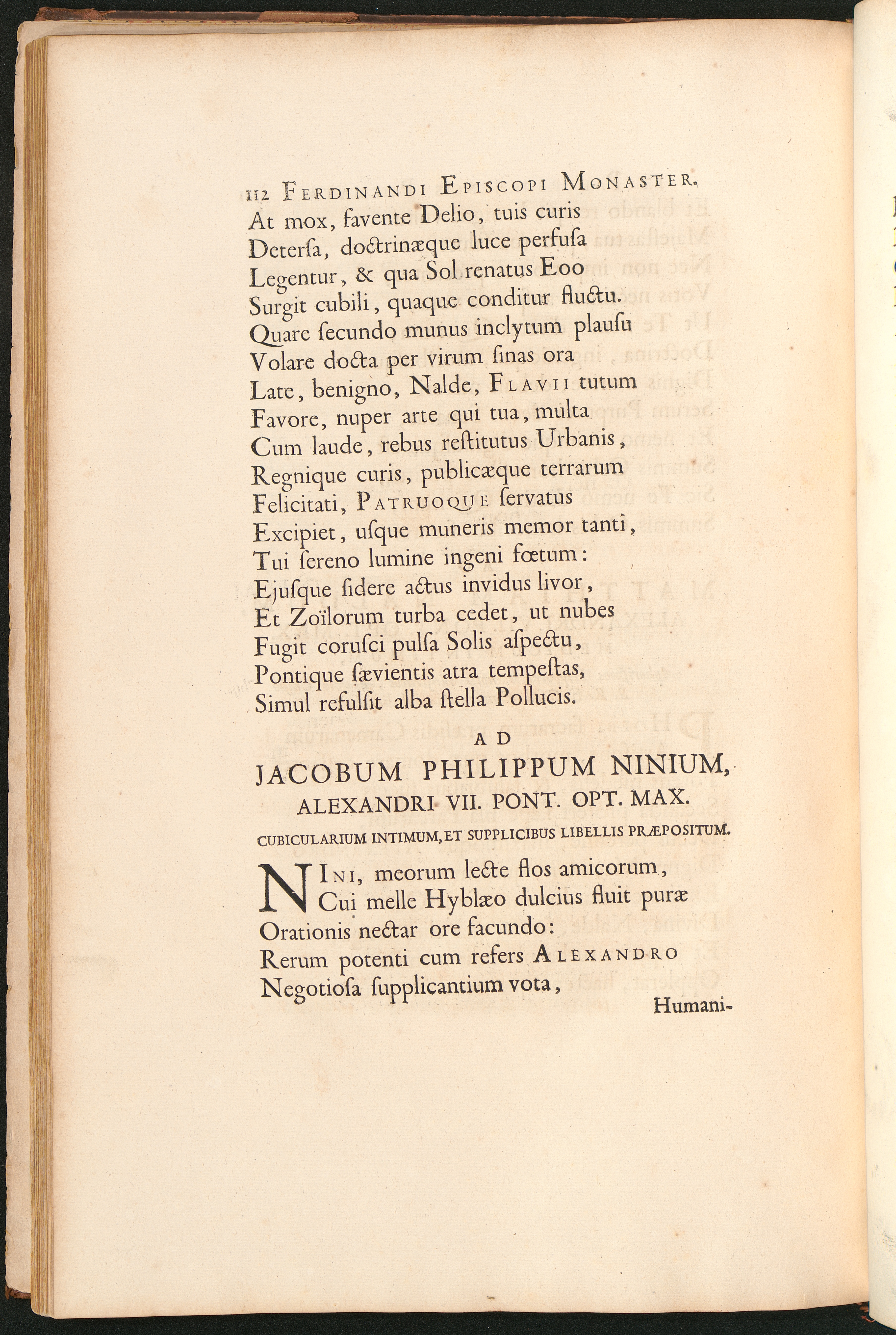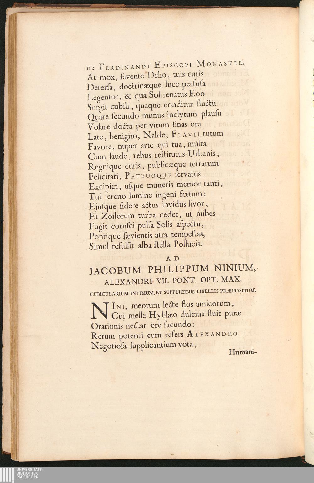 Ad Jacobum Philippum Ninium, Alexandri VII. Pont. Opt. Max. Cubicularium Intimum,[...]