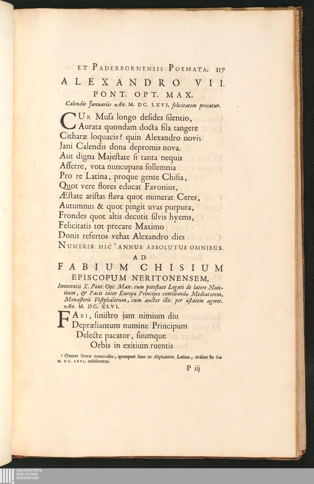 Alexandro VII. Pont. Opt. Max. Ad Fabium Chisium Episcopum Neritonensem, ...