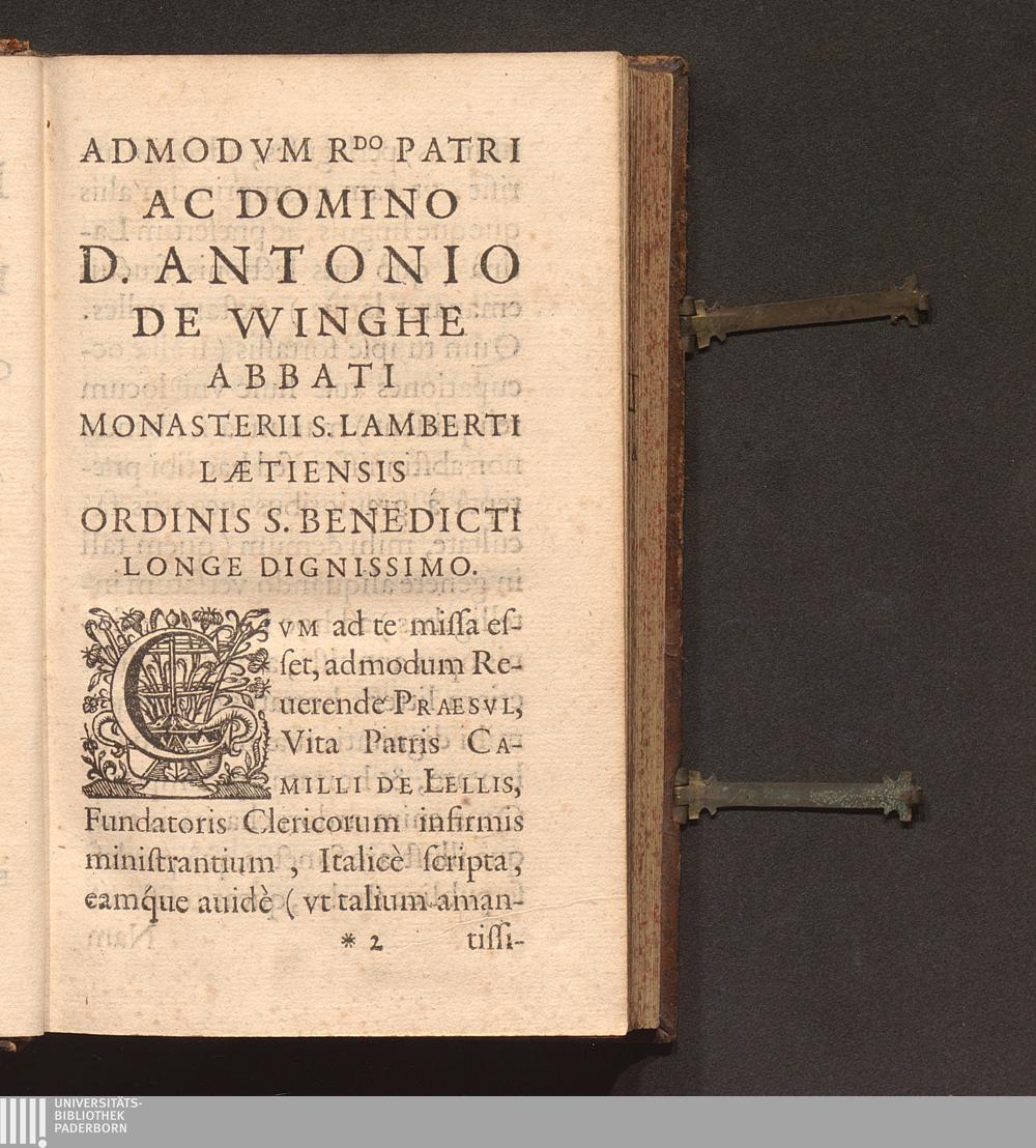 Vita P. Camilli De Lellis Fvndatoris Religionis Clericorvm Regvlarivm Infirmis Ministrantivm / Scripta Italice A P. Santio Cicatello eiusdem Religionis Sacerdote, Latinitate Donata A P. Petro Halloix Societatis Iesv Presbytero