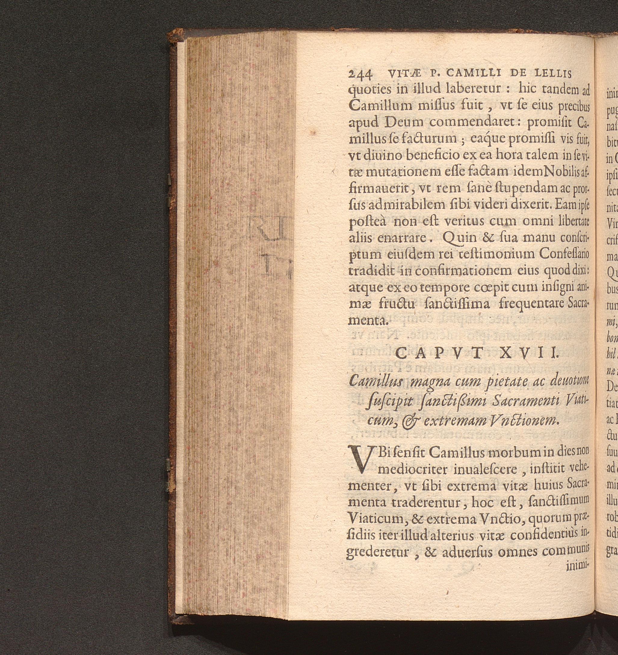 Vita P. Camilli De Lellis Fvndatoris Religionis Clericorvm Regvlarivm Infirmis Ministrantivm / Scripta Italice A P. Santio Cicatello eiusdem Religionis Sacerdote, Latinitate Donata A P. Petro Halloix Societatis Iesv Presbytero