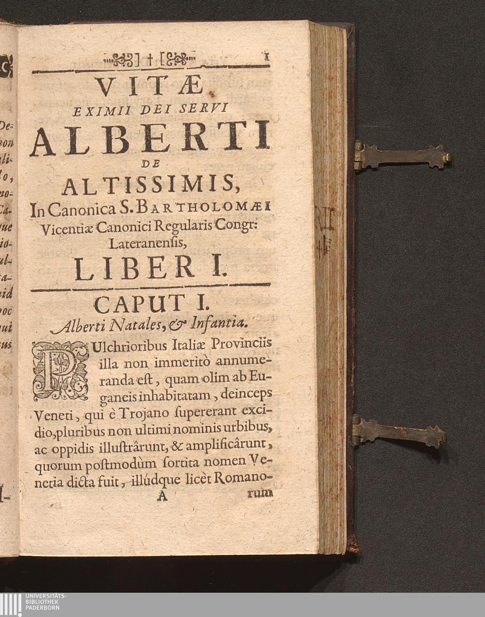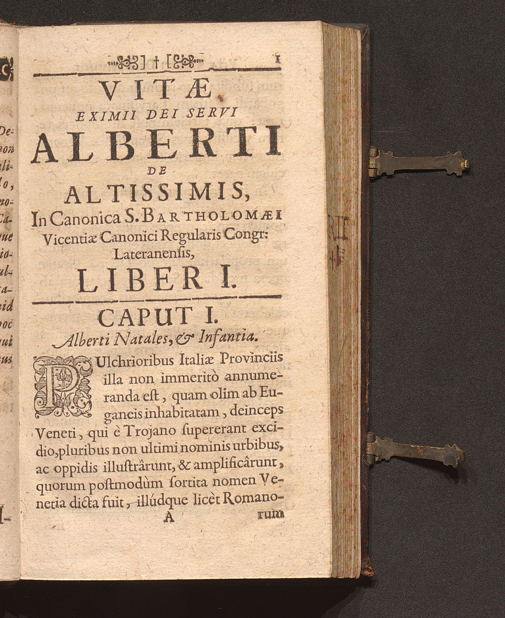 Vita Eximii Dei Servi Alberti De Altissimis, Canonici Regularis Congregationis Lateranensis / Primùm Italico Idiomate à R. P. D. Paulo Emilio Saraceno, Ejusdem Congregationis Canonico, & S. Victoris Bononiæ Priore conscripta, Nunc verò latinè reddita Interprete R. P. Dominico Bisselio ad S. Crucem Augustæ Vindel. eundem Ordinem Professo, & Decano