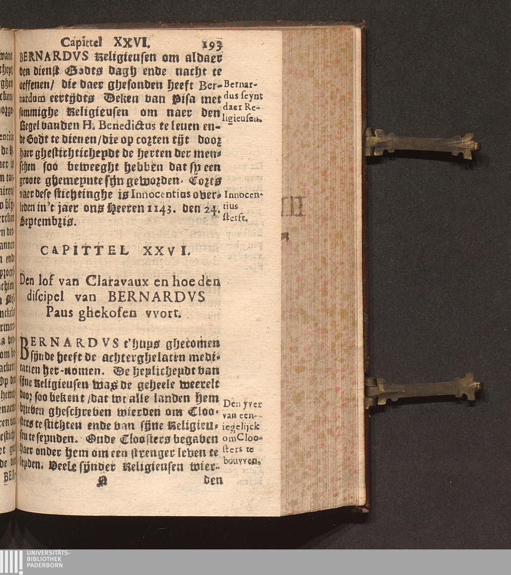 Het Leven Ende Mirakelen Vanden H. Ende Honichvloeyenden Leeraer Bernardvs / Beschreven in't Latijn door dry verscheyden Autheurs. Van nieuvvs overgheset uyt Latijn in't Neder-duyts door Fr. Gaspar Verstockt Religieus ende Priester der Abdije van onse Lieve-Vrouvve, ter plaetse van S. Bernaert op't Scheldt, der Orden van Cisteaux