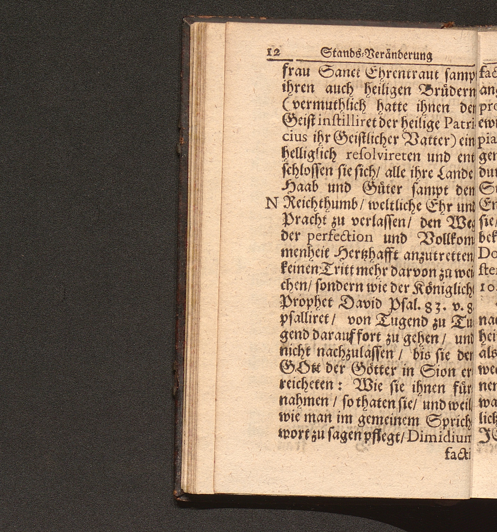 Tugend-Spiegel Aller Zucht-liebenden Closter-Jungfrauen. Das ist: Schönes Tractätlein von Zwantzig halbstündigen Sermonen über das Leben der H. Jungfrauen und Mutter/ Ehrentraut/ Sanct Ruperti leiblichen Schwester/ weiland ersten Abbtissin/ Vorsteherin und Regentin des Käyserlichen Adelichen Stiffts und berühmten Frauen-Closters/ Ordinis S. Benedicti allhier zu Saltzburg/ auf dem also genandten Nunberg / Aus bewehrten Schrifften fleissig zusammen getragen/ Durch P. F. Procopium von Templin/ Capucciner Priester und Prediger