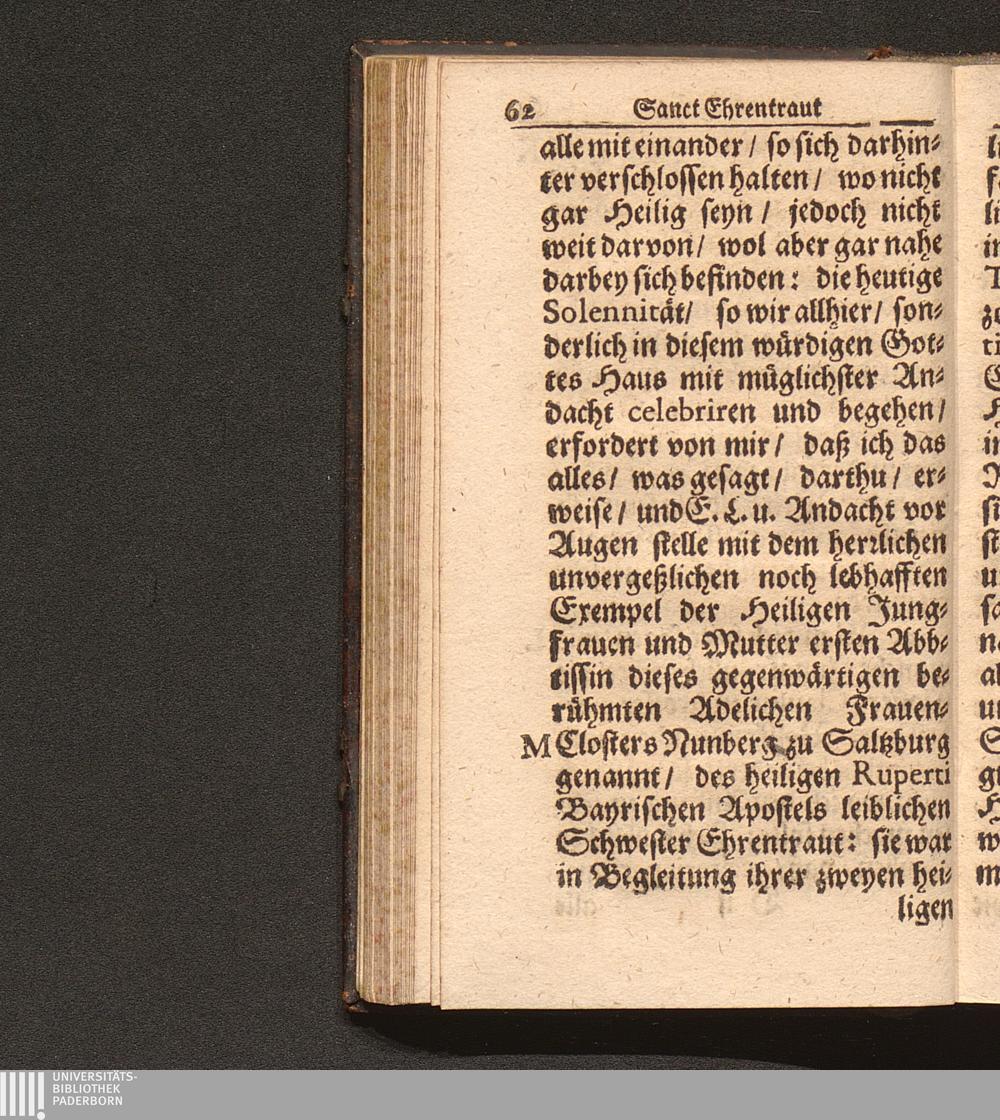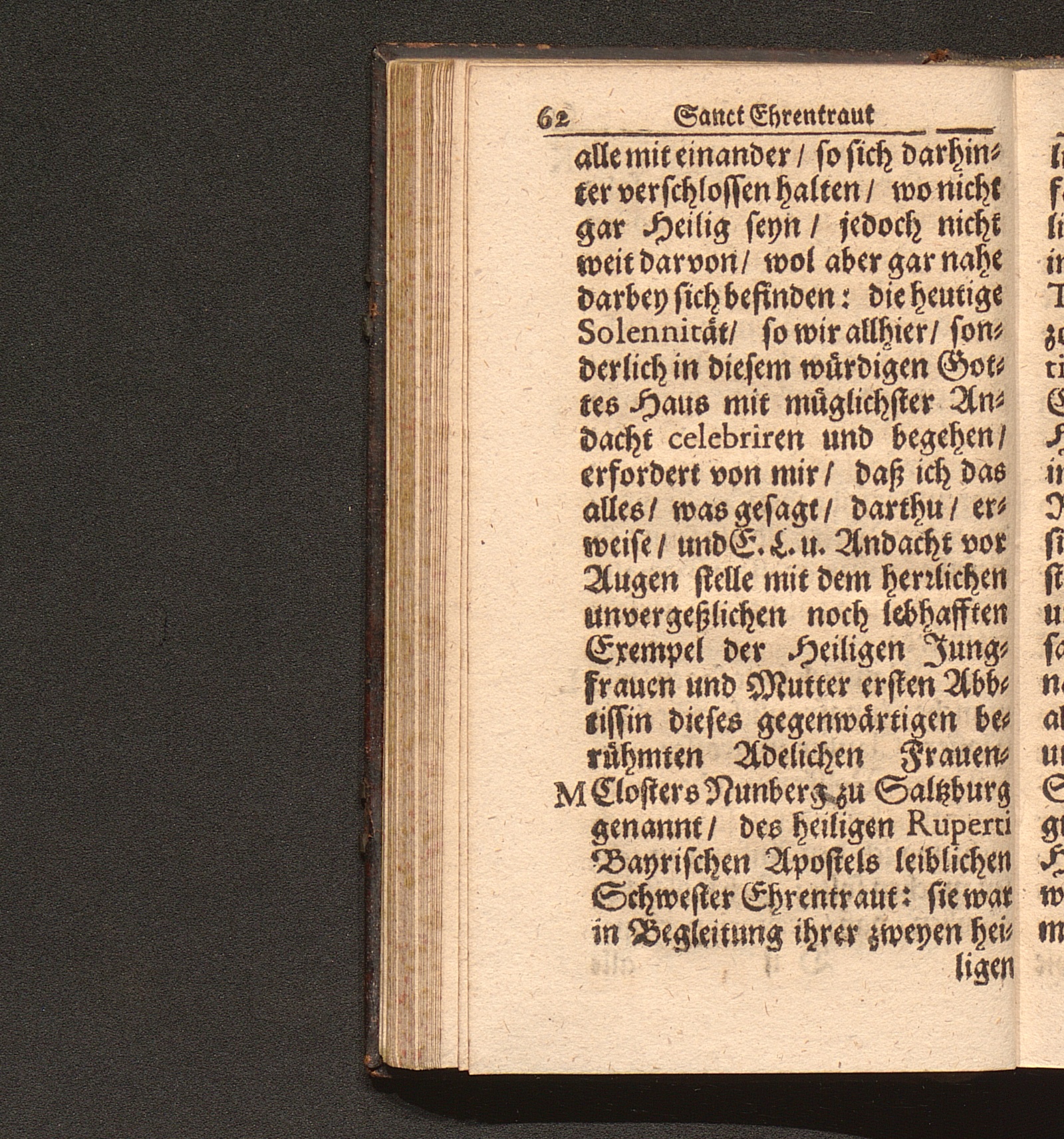 Tugend-Spiegel Aller Zucht-liebenden Closter-Jungfrauen. Das ist: Schönes Tractätlein von Zwantzig halbstündigen Sermonen über das Leben der H. Jungfrauen und Mutter/ Ehrentraut/ Sanct Ruperti leiblichen Schwester/ weiland ersten Abbtissin/ Vorsteherin und Regentin des Käyserlichen Adelichen Stiffts und berühmten Frauen-Closters/ Ordinis S. Benedicti allhier zu Saltzburg/ auf dem also genandten Nunberg / Aus bewehrten Schrifften fleissig zusammen getragen/ Durch P. F. Procopium von Templin/ Capucciner Priester und Prediger