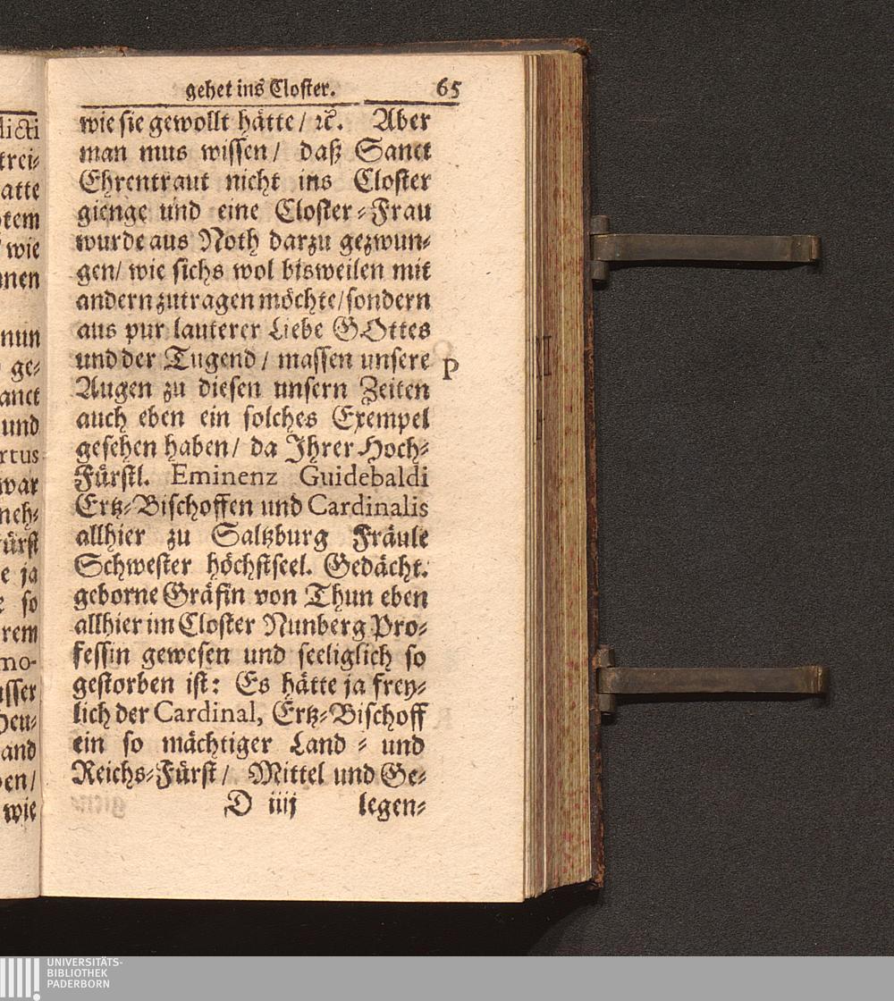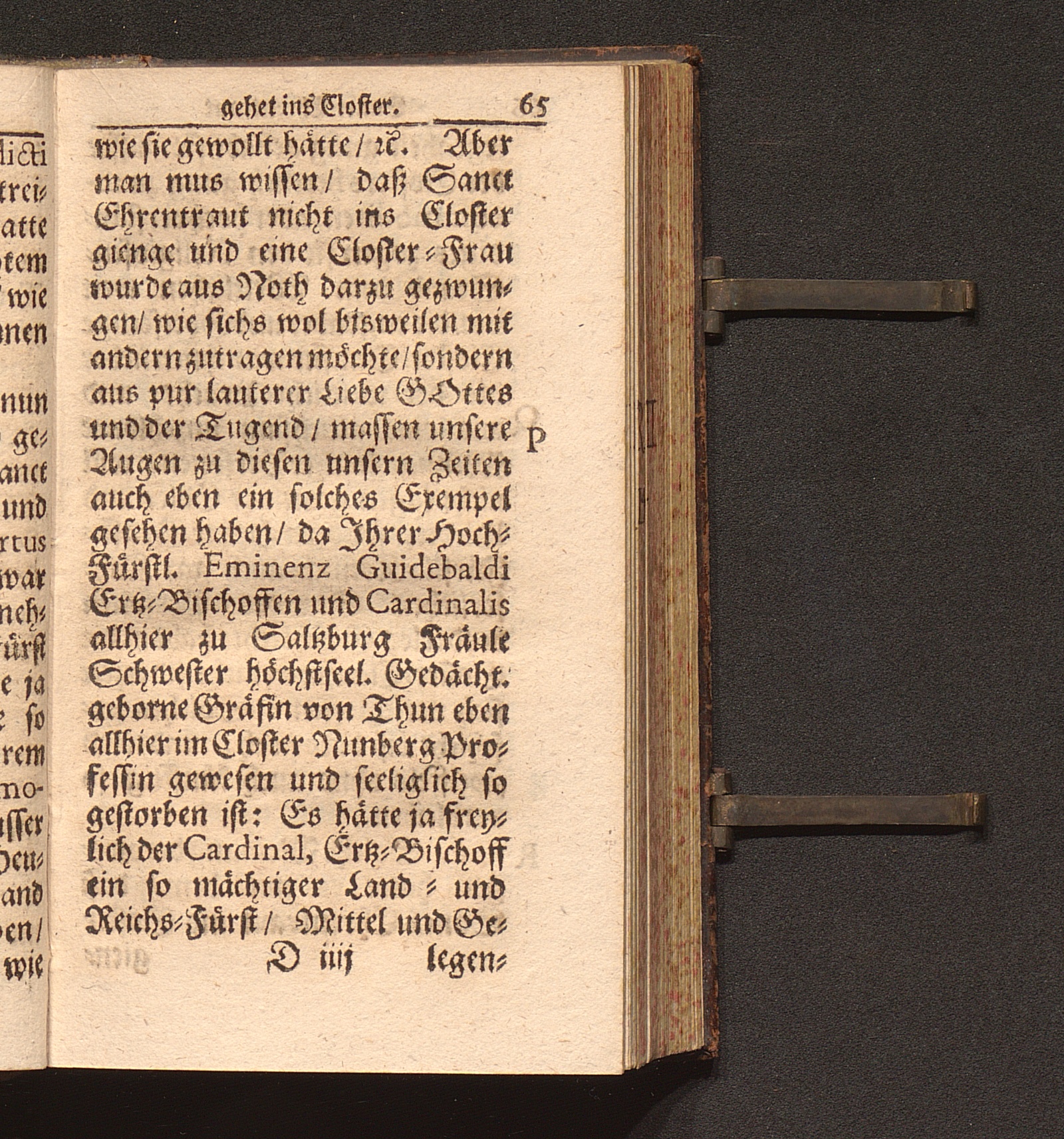 Tugend-Spiegel Aller Zucht-liebenden Closter-Jungfrauen. Das ist: Schönes Tractätlein von Zwantzig halbstündigen Sermonen über das Leben der H. Jungfrauen und Mutter/ Ehrentraut/ Sanct Ruperti leiblichen Schwester/ weiland ersten Abbtissin/ Vorsteherin und Regentin des Käyserlichen Adelichen Stiffts und berühmten Frauen-Closters/ Ordinis S. Benedicti allhier zu Saltzburg/ auf dem also genandten Nunberg / Aus bewehrten Schrifften fleissig zusammen getragen/ Durch P. F. Procopium von Templin/ Capucciner Priester und Prediger