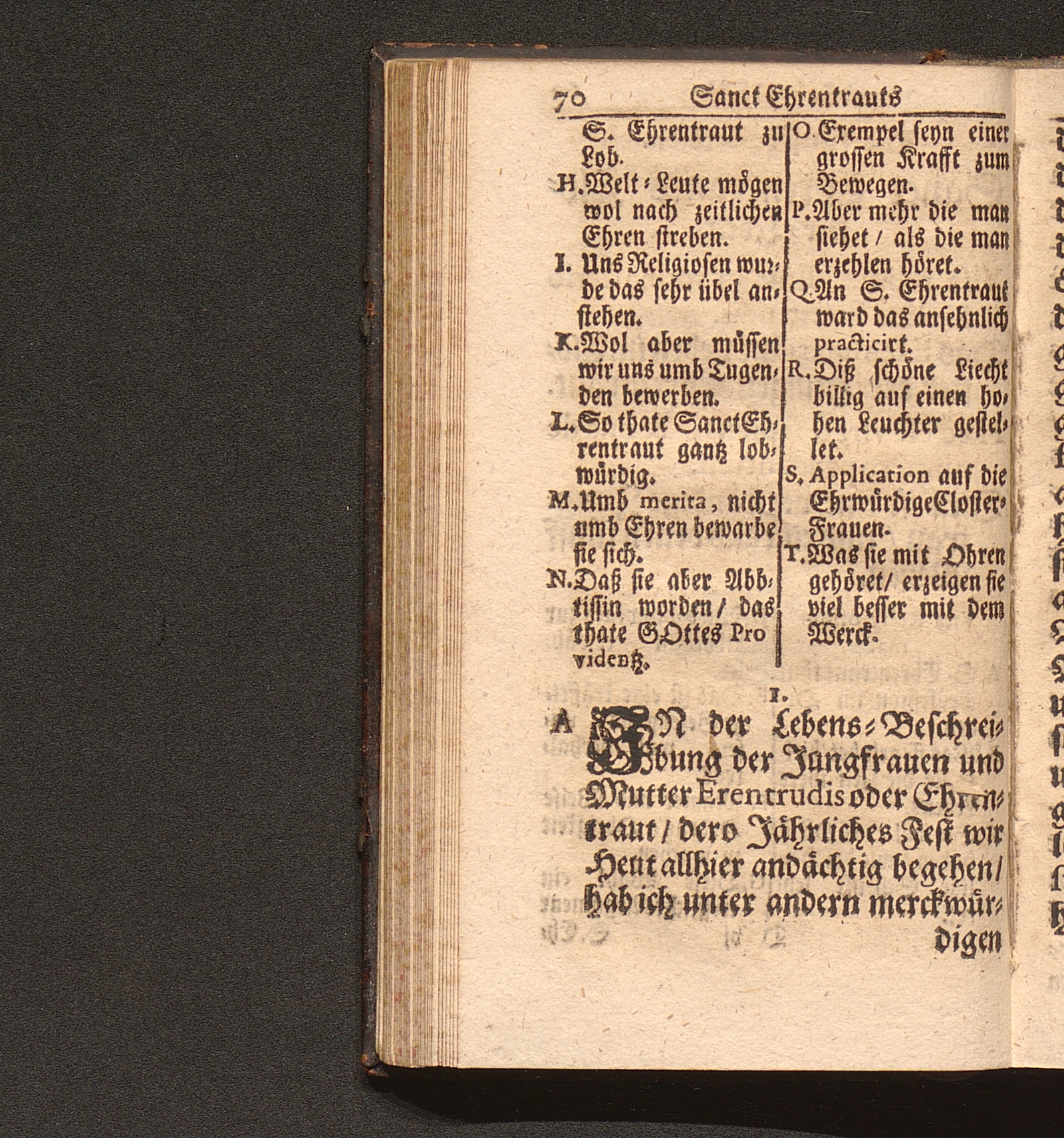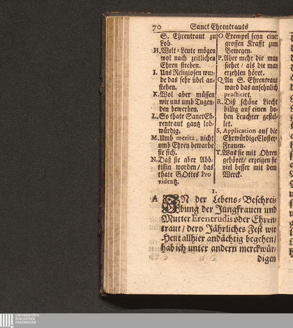 Tugend-Spiegel Aller Zucht-liebenden Closter-Jungfrauen. Das ist: Schönes Tractätlein von Zwantzig halbstündigen Sermonen über das Leben der H. Jungfrauen und Mutter/ Ehrentraut/ Sanct Ruperti leiblichen Schwester/ weiland ersten Abbtissin/ Vorsteherin und Regentin des Käyserlichen Adelichen Stiffts und berühmten Frauen-Closters/ Ordinis S. Benedicti allhier zu Saltzburg/ auf dem also genandten Nunberg / Aus bewehrten Schrifften fleissig zusammen getragen/ Durch P. F. Procopium von Templin/ Capucciner Priester und Prediger