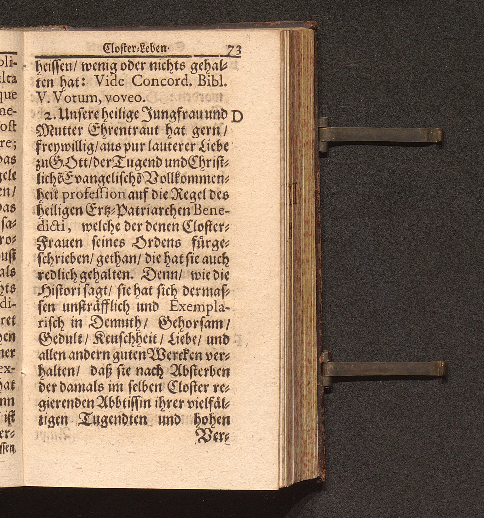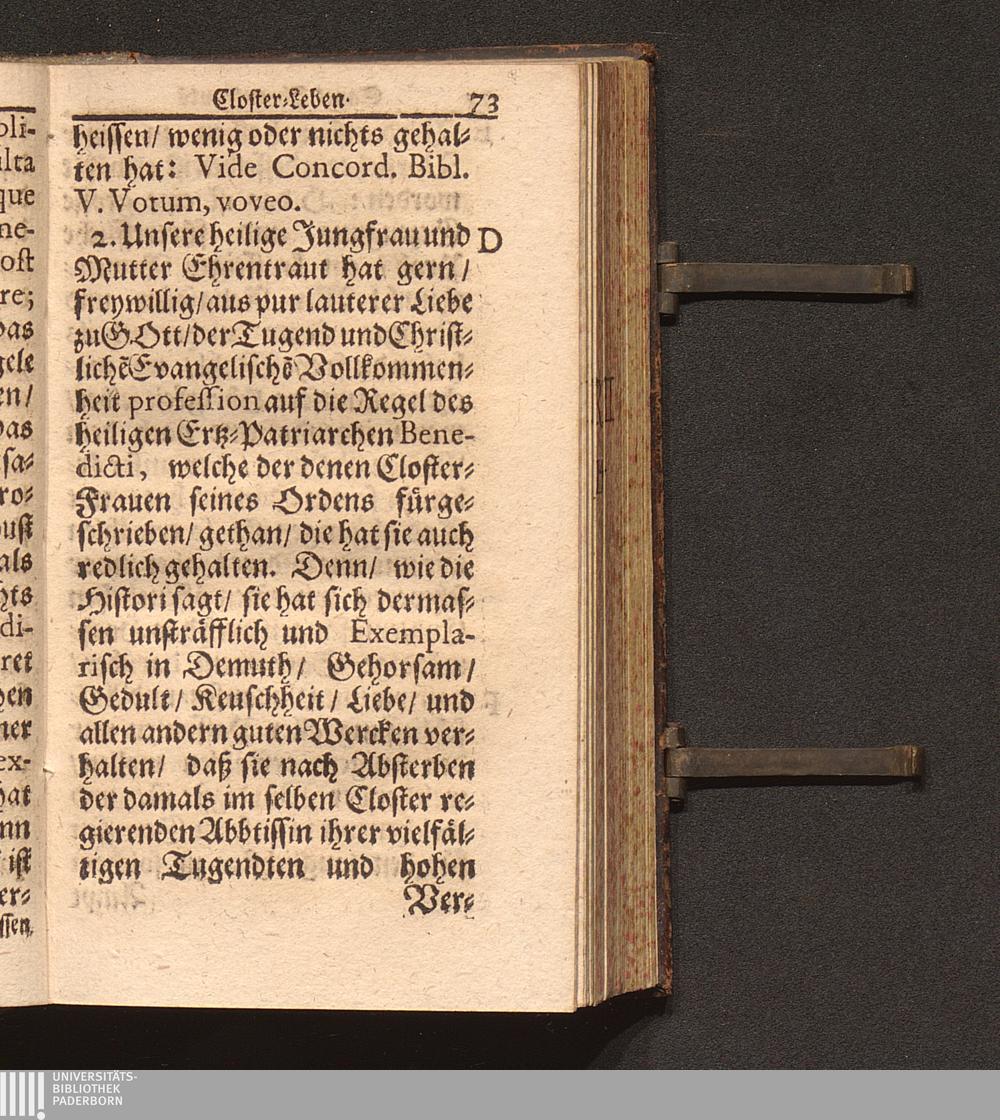 Tugend-Spiegel Aller Zucht-liebenden Closter-Jungfrauen. Das ist: Schönes Tractätlein von Zwantzig halbstündigen Sermonen über das Leben der H. Jungfrauen und Mutter/ Ehrentraut/ Sanct Ruperti leiblichen Schwester/ weiland ersten Abbtissin/ Vorsteherin und Regentin des Käyserlichen Adelichen Stiffts und berühmten Frauen-Closters/ Ordinis S. Benedicti allhier zu Saltzburg/ auf dem also genandten Nunberg / Aus bewehrten Schrifften fleissig zusammen getragen/ Durch P. F. Procopium von Templin/ Capucciner Priester und Prediger