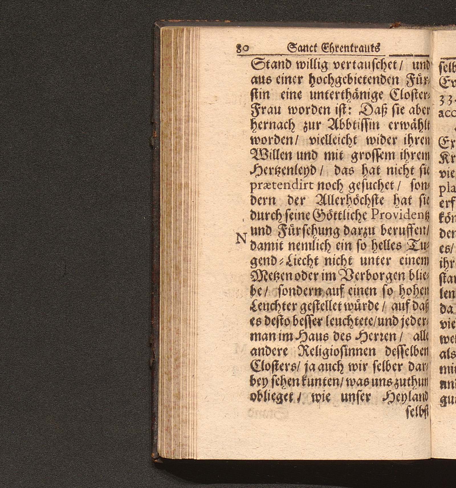 Tugend-Spiegel Aller Zucht-liebenden Closter-Jungfrauen. Das ist: Schönes Tractätlein von Zwantzig halbstündigen Sermonen über das Leben der H. Jungfrauen und Mutter/ Ehrentraut/ Sanct Ruperti leiblichen Schwester/ weiland ersten Abbtissin/ Vorsteherin und Regentin des Käyserlichen Adelichen Stiffts und berühmten Frauen-Closters/ Ordinis S. Benedicti allhier zu Saltzburg/ auf dem also genandten Nunberg / Aus bewehrten Schrifften fleissig zusammen getragen/ Durch P. F. Procopium von Templin/ Capucciner Priester und Prediger