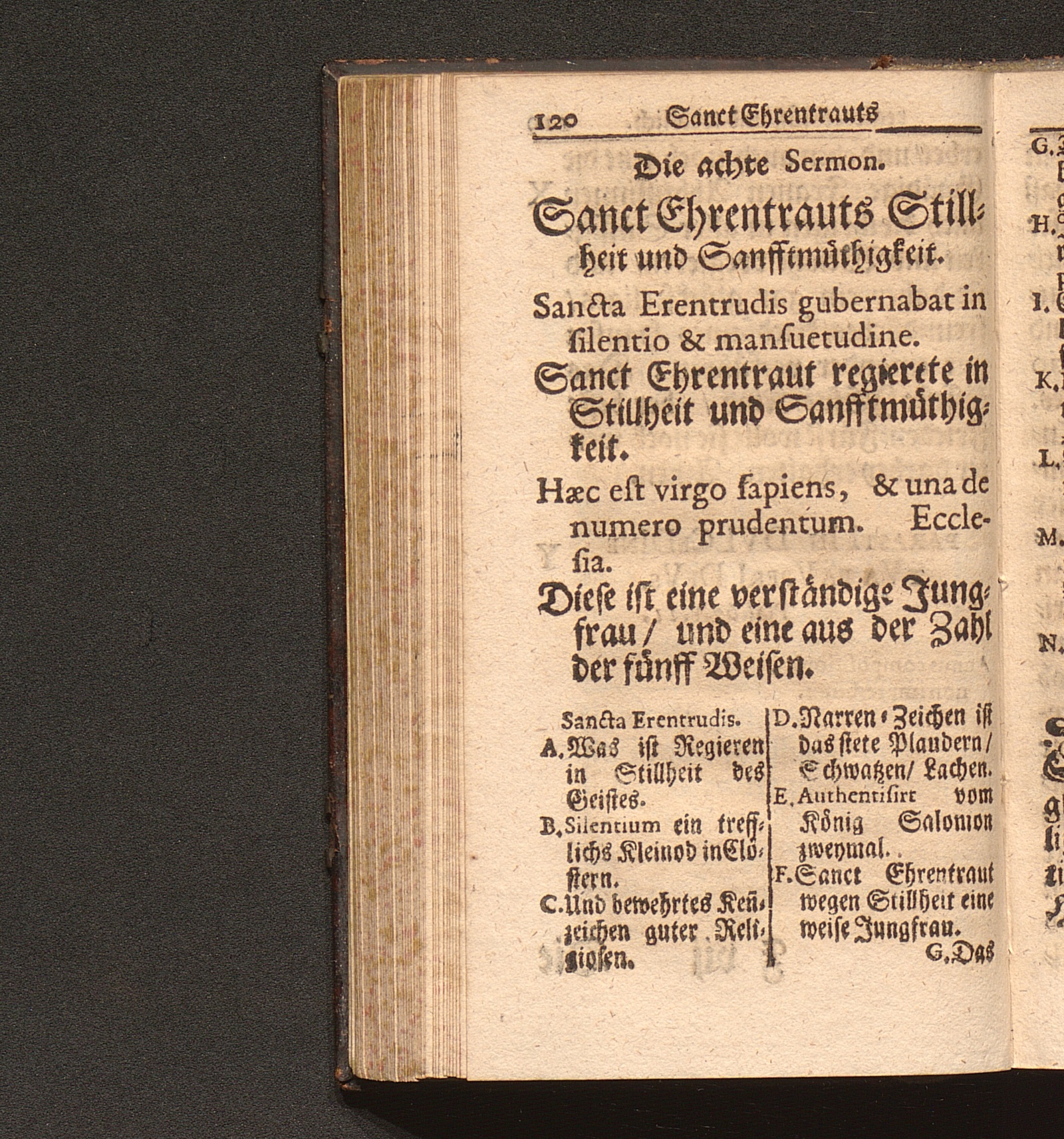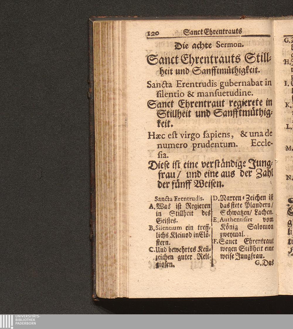 Tugend-Spiegel Aller Zucht-liebenden Closter-Jungfrauen. Das ist: Schönes Tractätlein von Zwantzig halbstündigen Sermonen über das Leben der H. Jungfrauen und Mutter/ Ehrentraut/ Sanct Ruperti leiblichen Schwester/ weiland ersten Abbtissin/ Vorsteherin und Regentin des Käyserlichen Adelichen Stiffts und berühmten Frauen-Closters/ Ordinis S. Benedicti allhier zu Saltzburg/ auf dem also genandten Nunberg / Aus bewehrten Schrifften fleissig zusammen getragen/ Durch P. F. Procopium von Templin/ Capucciner Priester und Prediger