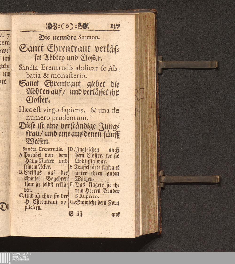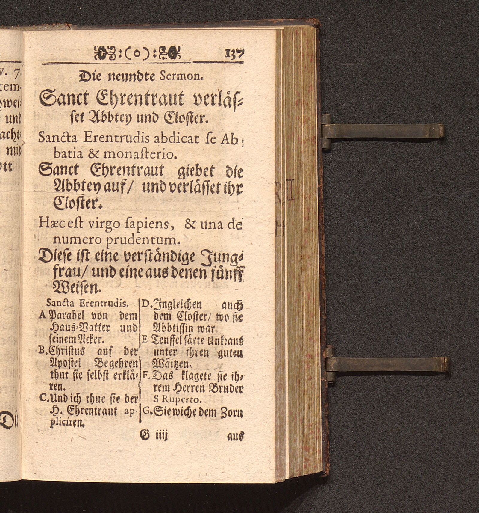 Tugend-Spiegel Aller Zucht-liebenden Closter-Jungfrauen. Das ist: Schönes Tractätlein von Zwantzig halbstündigen Sermonen über das Leben der H. Jungfrauen und Mutter/ Ehrentraut/ Sanct Ruperti leiblichen Schwester/ weiland ersten Abbtissin/ Vorsteherin und Regentin des Käyserlichen Adelichen Stiffts und berühmten Frauen-Closters/ Ordinis S. Benedicti allhier zu Saltzburg/ auf dem also genandten Nunberg / Aus bewehrten Schrifften fleissig zusammen getragen/ Durch P. F. Procopium von Templin/ Capucciner Priester und Prediger