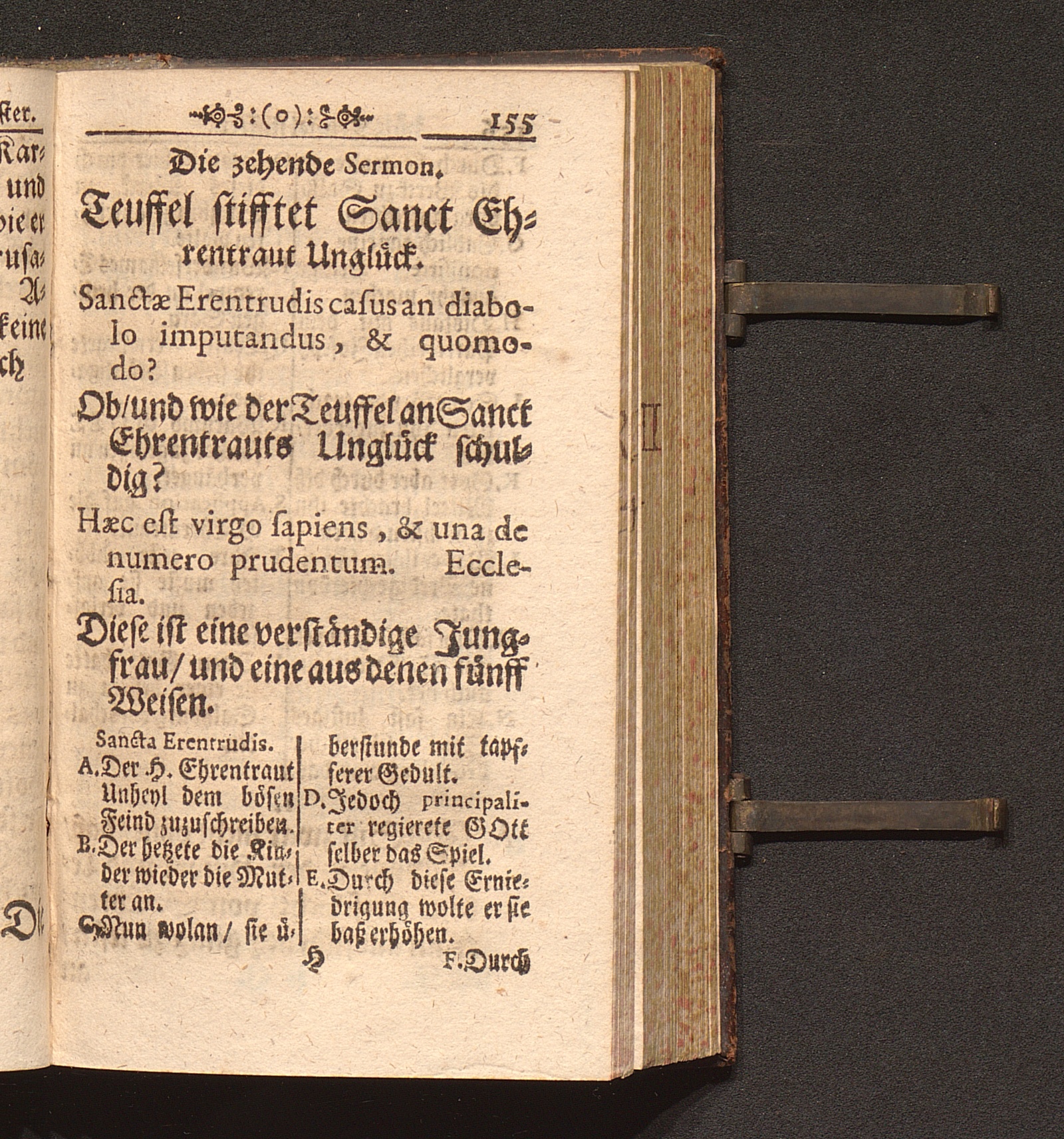 Tugend-Spiegel Aller Zucht-liebenden Closter-Jungfrauen. Das ist: Schönes Tractätlein von Zwantzig halbstündigen Sermonen über das Leben der H. Jungfrauen und Mutter/ Ehrentraut/ Sanct Ruperti leiblichen Schwester/ weiland ersten Abbtissin/ Vorsteherin und Regentin des Käyserlichen Adelichen Stiffts und berühmten Frauen-Closters/ Ordinis S. Benedicti allhier zu Saltzburg/ auf dem also genandten Nunberg / Aus bewehrten Schrifften fleissig zusammen getragen/ Durch P. F. Procopium von Templin/ Capucciner Priester und Prediger