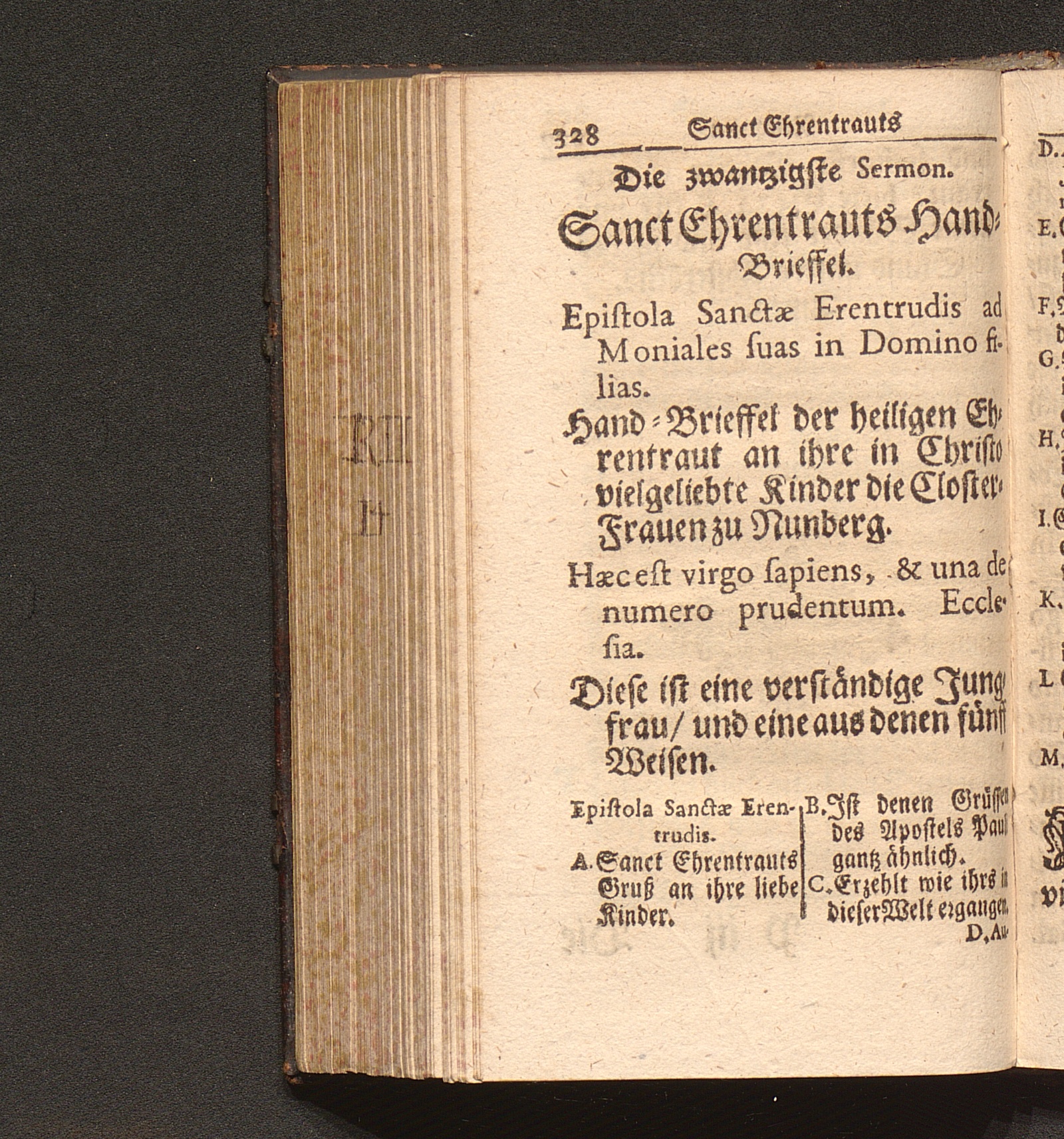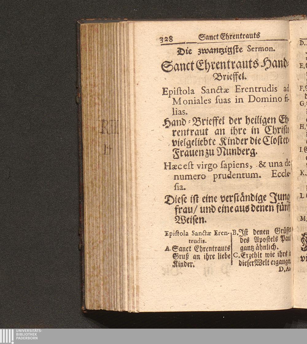 Tugend-Spiegel Aller Zucht-liebenden Closter-Jungfrauen. Das ist: Schönes Tractätlein von Zwantzig halbstündigen Sermonen über das Leben der H. Jungfrauen und Mutter/ Ehrentraut/ Sanct Ruperti leiblichen Schwester/ weiland ersten Abbtissin/ Vorsteherin und Regentin des Käyserlichen Adelichen Stiffts und berühmten Frauen-Closters/ Ordinis S. Benedicti allhier zu Saltzburg/ auf dem also genandten Nunberg / Aus bewehrten Schrifften fleissig zusammen getragen/ Durch P. F. Procopium von Templin/ Capucciner Priester und Prediger