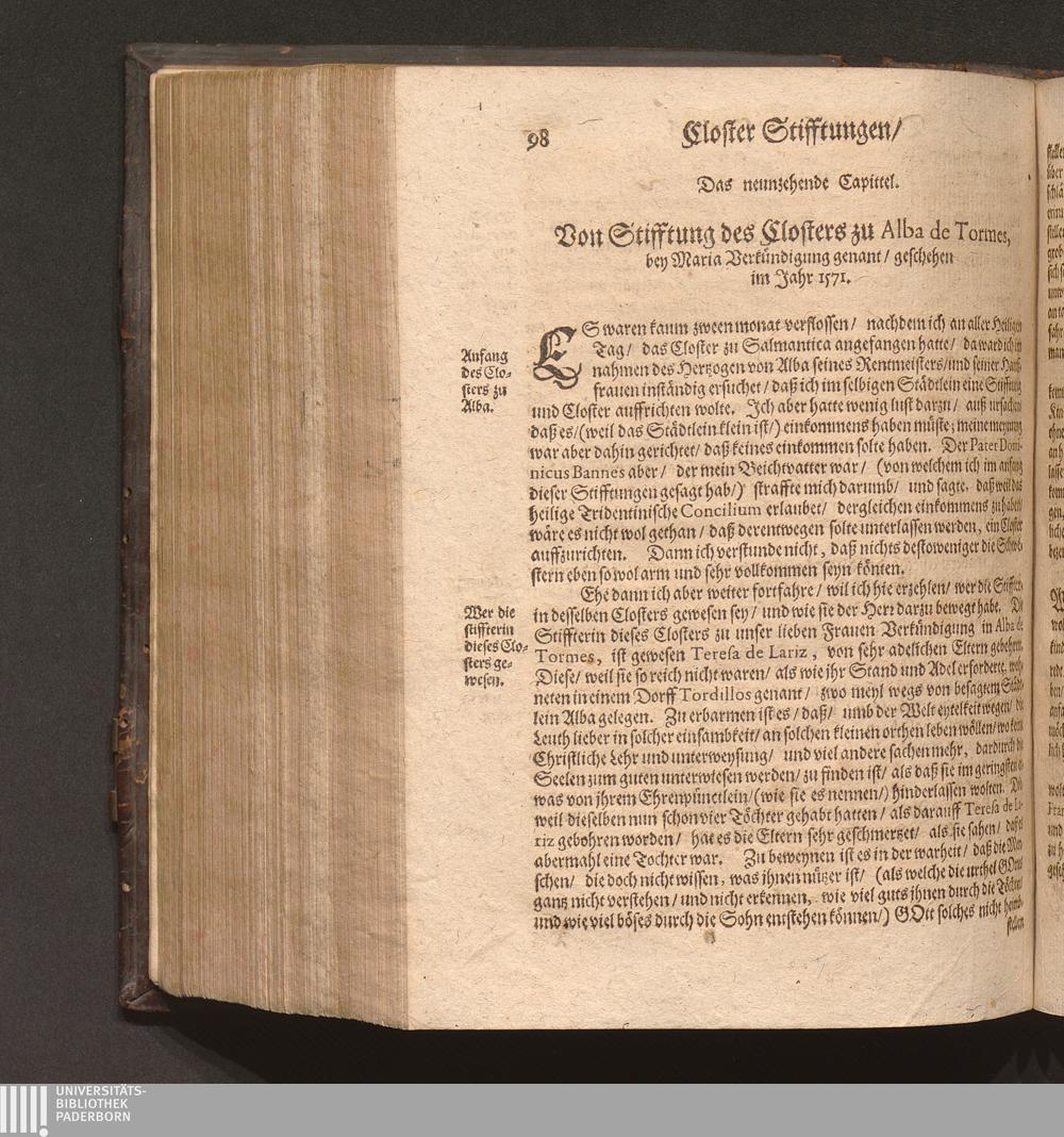 Das 19. Cap. Von Stifftung deß Klosters zu Alba de Tormes bey Mariæ Verkündigung[...]