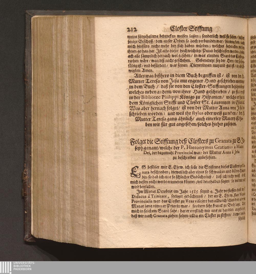 Folget die Stifftung deß Klosters zu Granata, zu S. Joseph genandt/ welches der Pater[...]