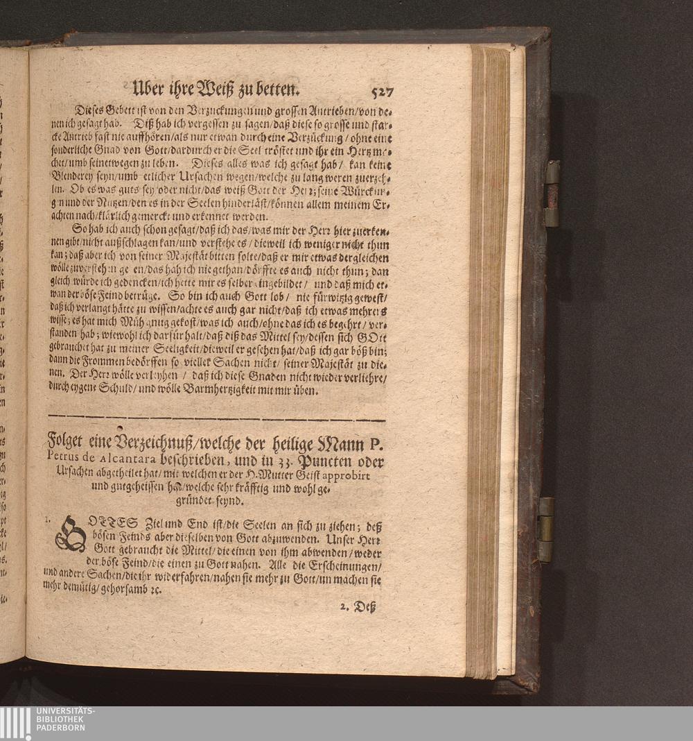 Eine Verzeichnuß welche der H. Mutter Petrus de Alcantara beschrieben/ und in 33.[...]