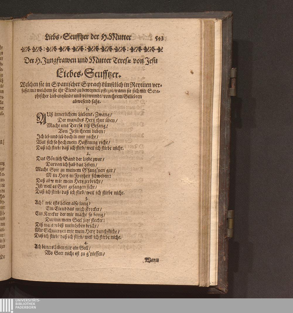 Der H. Teresa Lieb-Seufftzer in Reymen gefasset.