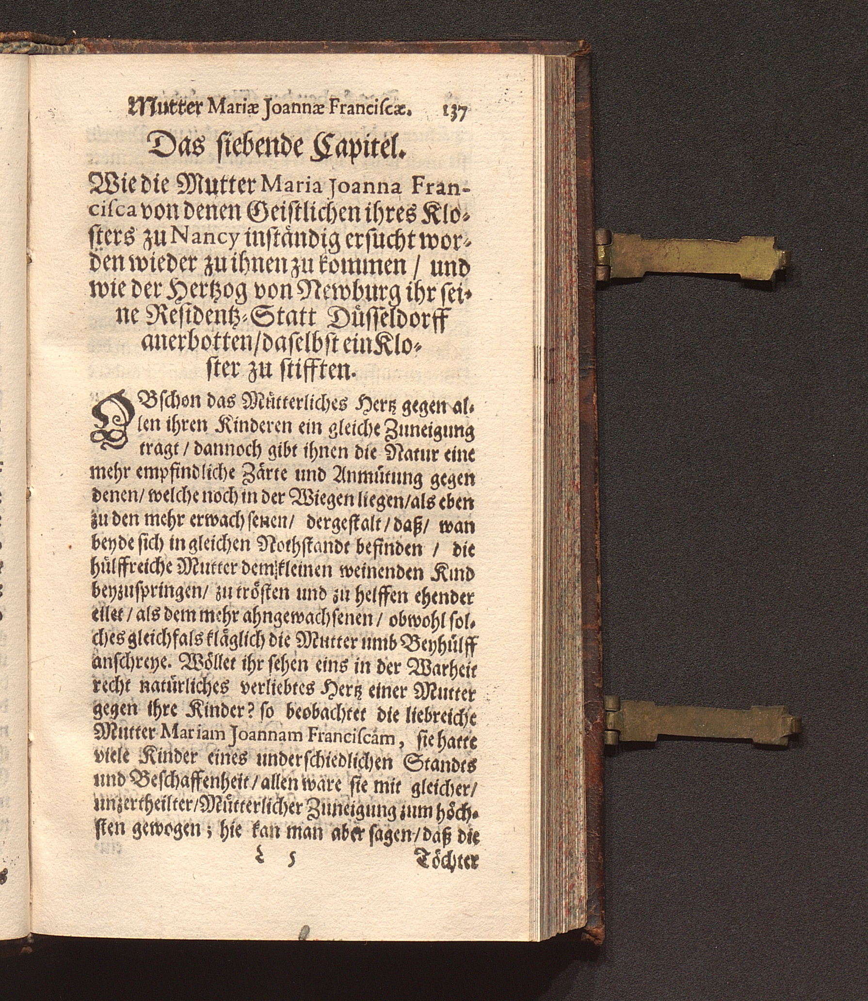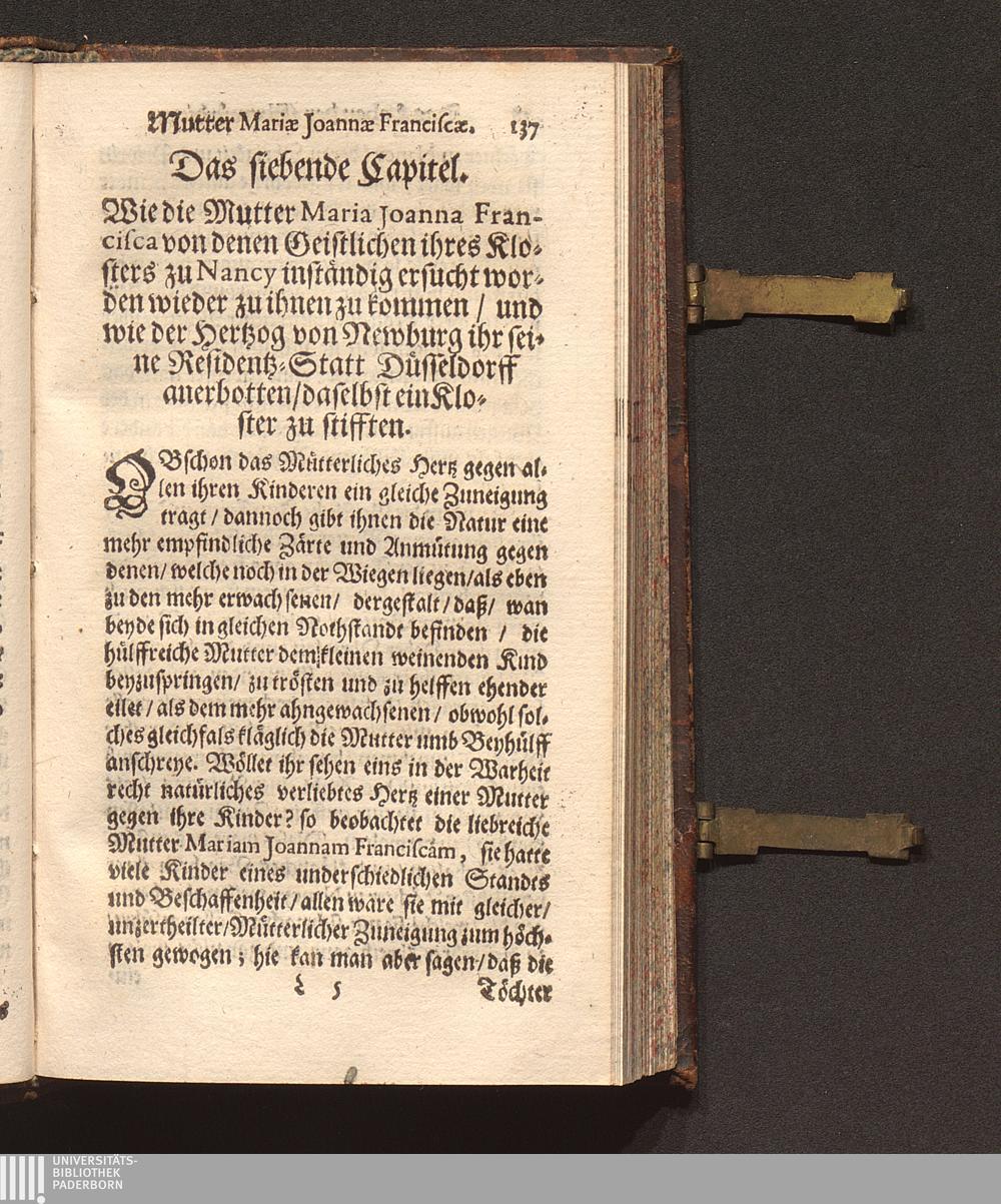 Eigentliche Abbildung Einer recht vollkommener Obrigkeit : Historisch- und Sittlicher Weiß entworffen Jn dem geführten Leben der Ehrwürdiger Muttern/ Mariæ Ioannæ Franciscæ, Erster Priorinnen Deren Annunciaten Cœlestineren zu Düsseldorff / Von ... P. Mansueto Novocastrensi, deß Ordens deß H. Vatters Francisci, Capuciner genant/ Prediger/ auff dem Papier in der Frantzösischer Sprach beschrieben/ in die Teutsche aber übersetzt und zum Truck verfertigt/ Durch R. P. Leonardum. von Aachen/ selbigen Ordens Prediger