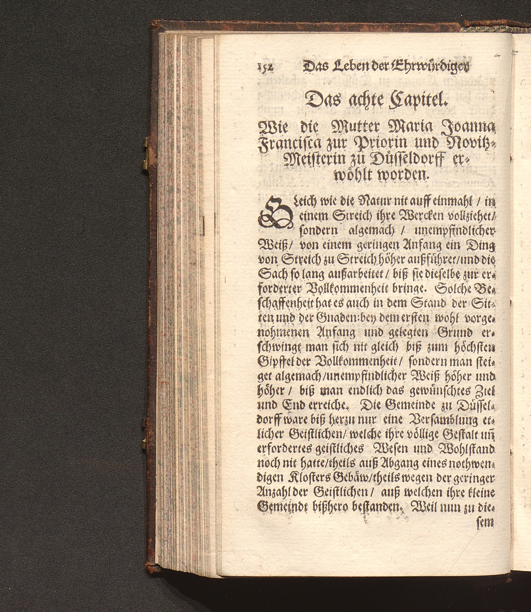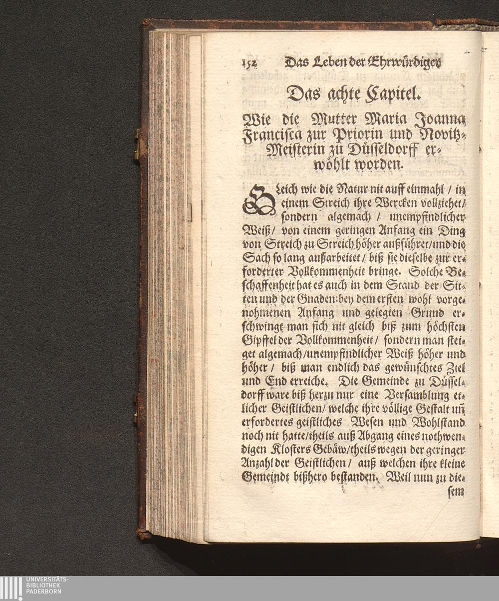 Eigentliche Abbildung Einer recht vollkommener Obrigkeit : Historisch- und Sittlicher Weiß entworffen Jn dem geführten Leben der Ehrwürdiger Muttern/ Mariæ Ioannæ Franciscæ, Erster Priorinnen Deren Annunciaten Cœlestineren zu Düsseldorff / Von ... P. Mansueto Novocastrensi, deß Ordens deß H. Vatters Francisci, Capuciner genant/ Prediger/ auff dem Papier in der Frantzösischer Sprach beschrieben/ in die Teutsche aber übersetzt und zum Truck verfertigt/ Durch R. P. Leonardum. von Aachen/ selbigen Ordens Prediger