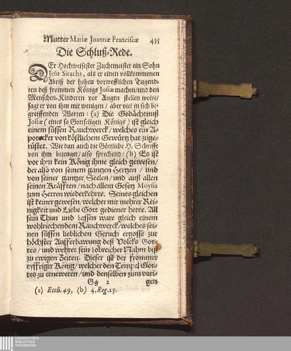 Eigentliche Abbildung Einer recht vollkommener Obrigkeit : Historisch- und Sittlicher Weiß entworffen Jn dem geführten Leben der Ehrwürdiger Muttern/ Mariæ Ioannæ Franciscæ, Erster Priorinnen Deren Annunciaten Cœlestineren zu Düsseldorff / Von ... P. Mansueto Novocastrensi, deß Ordens deß H. Vatters Francisci, Capuciner genant/ Prediger/ auff dem Papier in der Frantzösischer Sprach beschrieben/ in die Teutsche aber übersetzt und zum Truck verfertigt/ Durch R. P. Leonardum. von Aachen/ selbigen Ordens Prediger