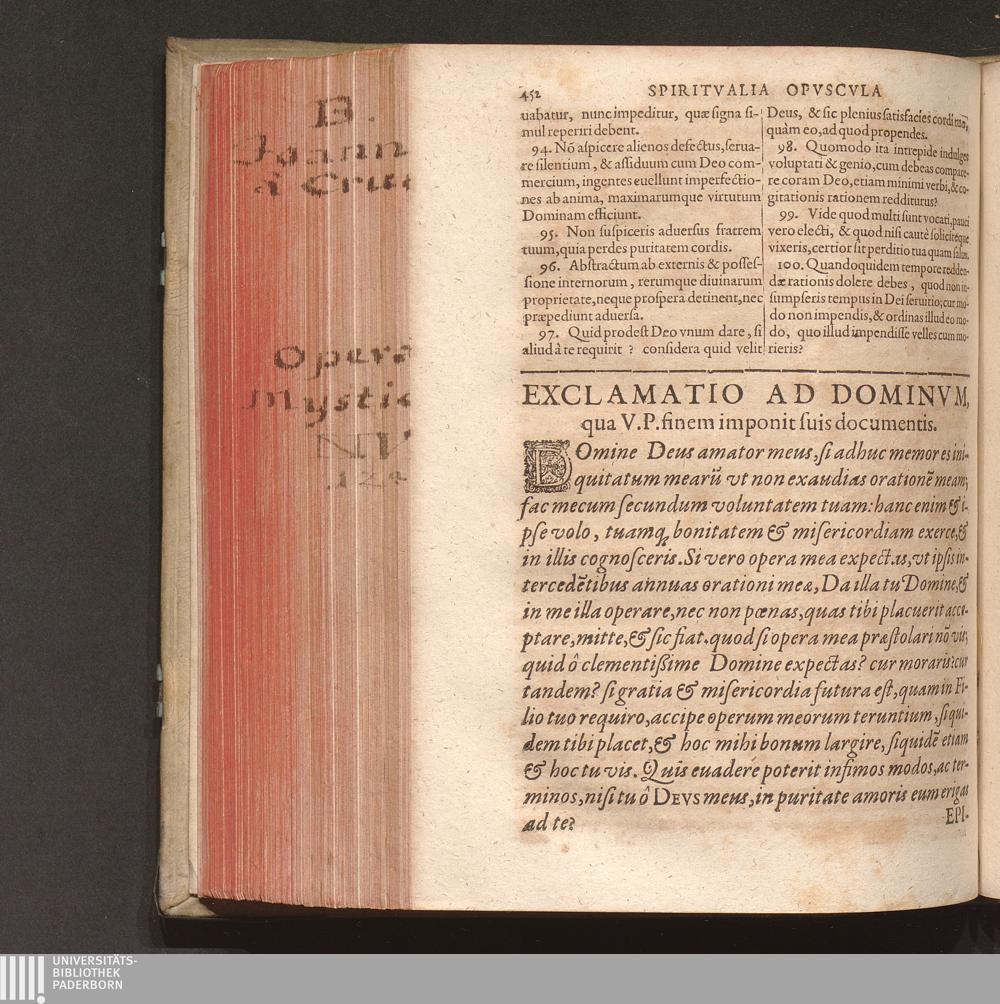 Opera Mystica V. Ac Mystici Doctoris F. Ioannis A Crvce Primi Religiosi Discalceati Ordinis B. V. M. De Monte Carmelo Et Seraphicæ Virginis Theresiæ fidelissimi coadiutoris / Ex Hispanico idiomate in Latinum nunc primum translata, Per R. P. F. Andream A Iesv Polonum eiusdem Ordinis Religiosum