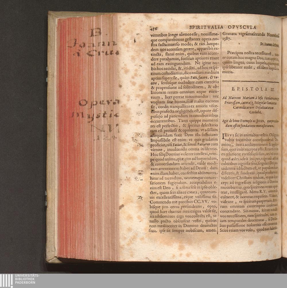 Opera Mystica V. Ac Mystici Doctoris F. Ioannis A Crvce Primi Religiosi Discalceati Ordinis B. V. M. De Monte Carmelo Et Seraphicæ Virginis Theresiæ fidelissimi coadiutoris / Ex Hispanico idiomate in Latinum nunc primum translata, Per R. P. F. Andream A Iesv Polonum eiusdem Ordinis Religiosum