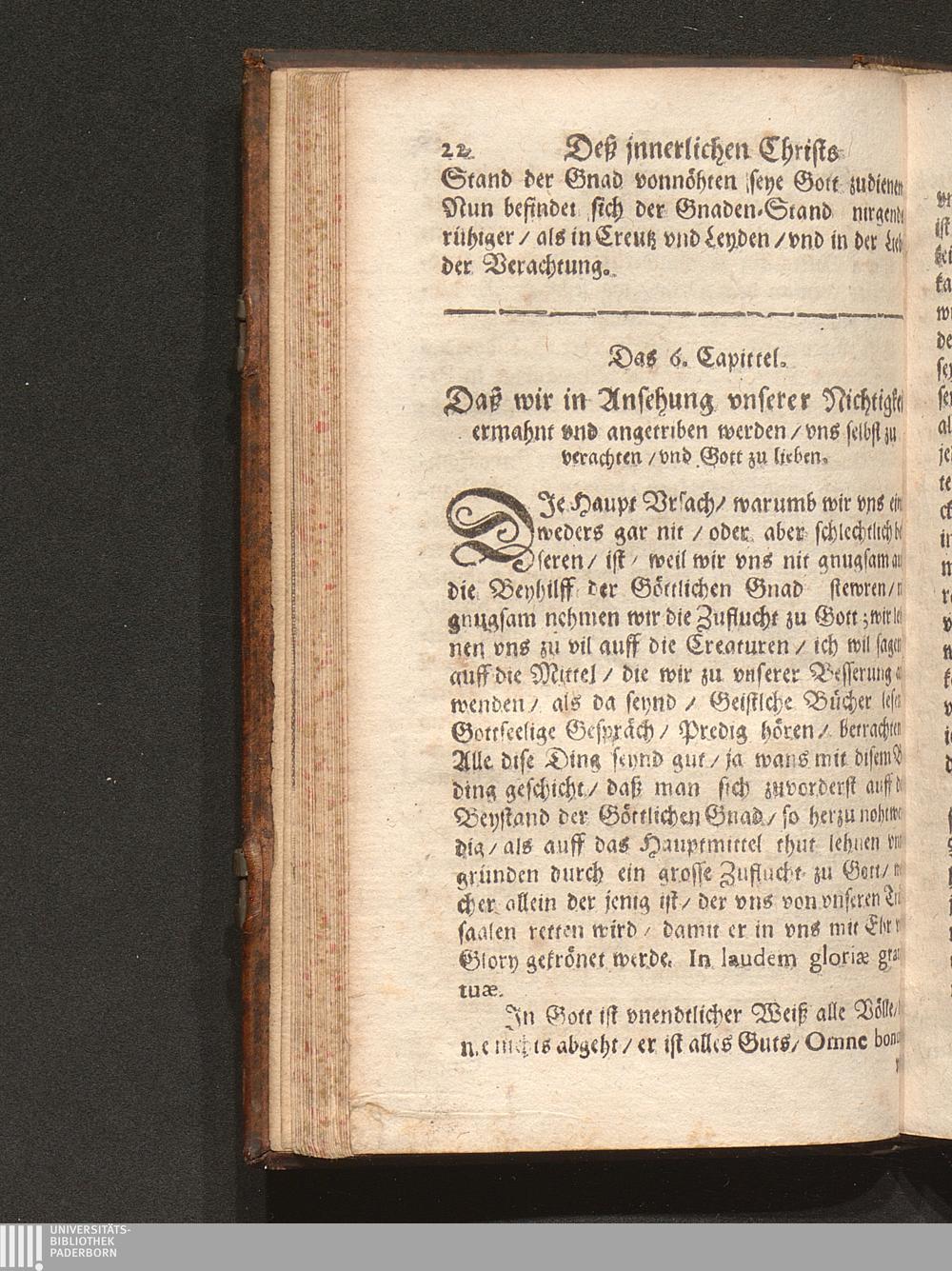 Jnnerlicher Christ/ oder Die Jnnerliche Gleichförmigkeit/ welche der Christ mit Christo haben soll : Abgetheilt in VIII. Bücher/ darin gantz Göttliche Lehren Sprüch vnnd Meynungen begriffen seynd / Gezogen auß den Schrifften eines grossen Dieners Gottes vnserer Zeiten/ Durch einen Einsidler. Auß dem Frantzösischen ... in das Teutsche versetzt ... Von dem Francisco Brandenberg, Canonico zu Bischoffzell/ [et]c.
