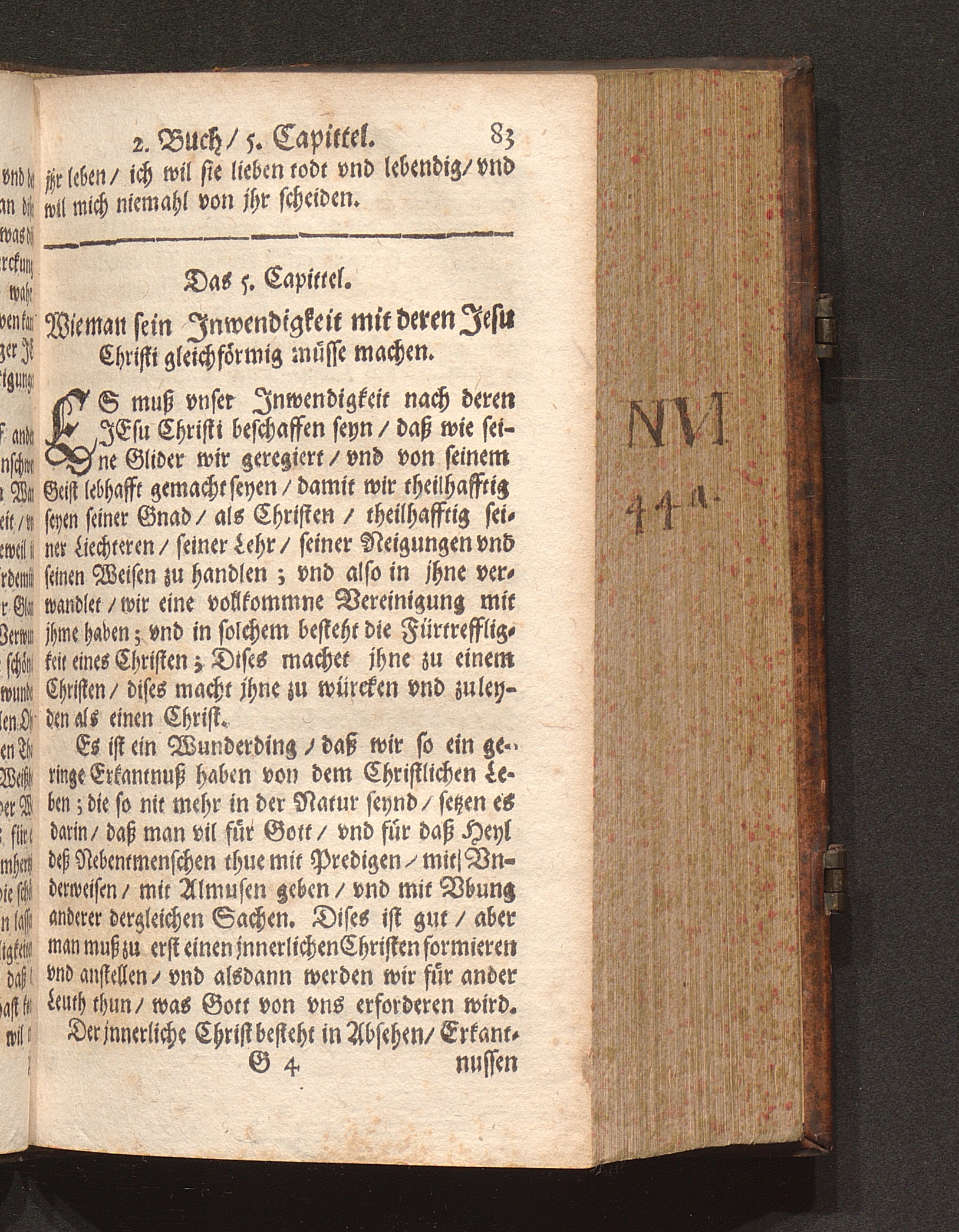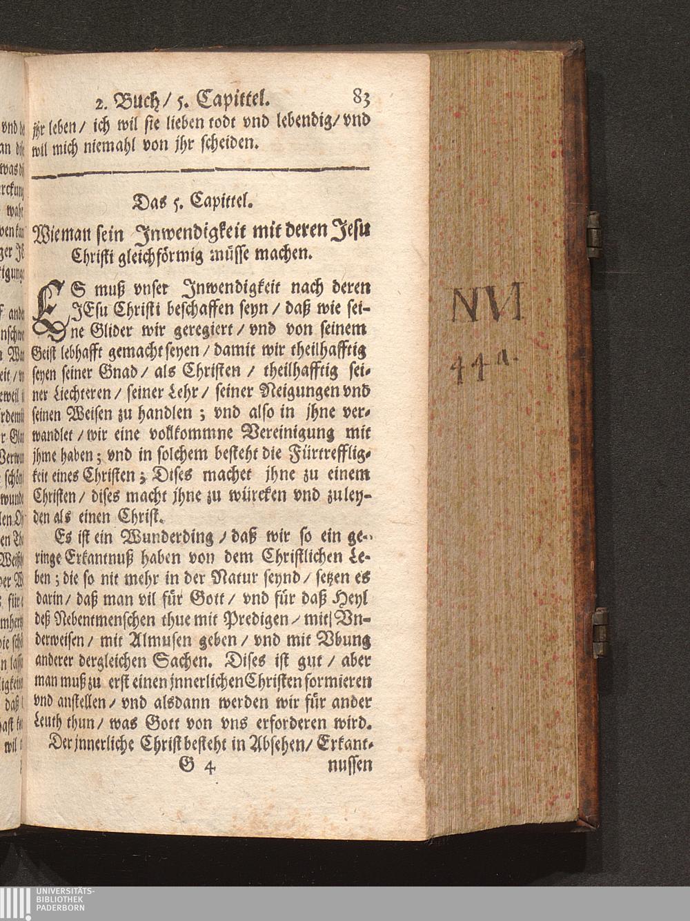 Jnnerlicher Christ/ oder Die Jnnerliche Gleichförmigkeit/ welche der Christ mit Christo haben soll : Abgetheilt in VIII. Bücher/ darin gantz Göttliche Lehren Sprüch vnnd Meynungen begriffen seynd / Gezogen auß den Schrifften eines grossen Dieners Gottes vnserer Zeiten/ Durch einen Einsidler. Auß dem Frantzösischen ... in das Teutsche versetzt ... Von dem Francisco Brandenberg, Canonico zu Bischoffzell/ [et]c.