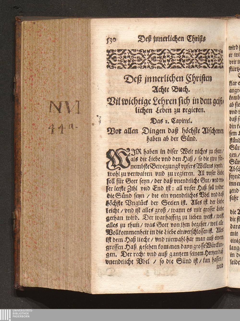 Jnnerlicher Christ/ oder Die Jnnerliche Gleichförmigkeit/ welche der Christ mit Christo haben soll : Abgetheilt in VIII. Bücher/ darin gantz Göttliche Lehren Sprüch vnnd Meynungen begriffen seynd / Gezogen auß den Schrifften eines grossen Dieners Gottes vnserer Zeiten/ Durch einen Einsidler. Auß dem Frantzösischen ... in das Teutsche versetzt ... Von dem Francisco Brandenberg, Canonico zu Bischoffzell/ [et]c.