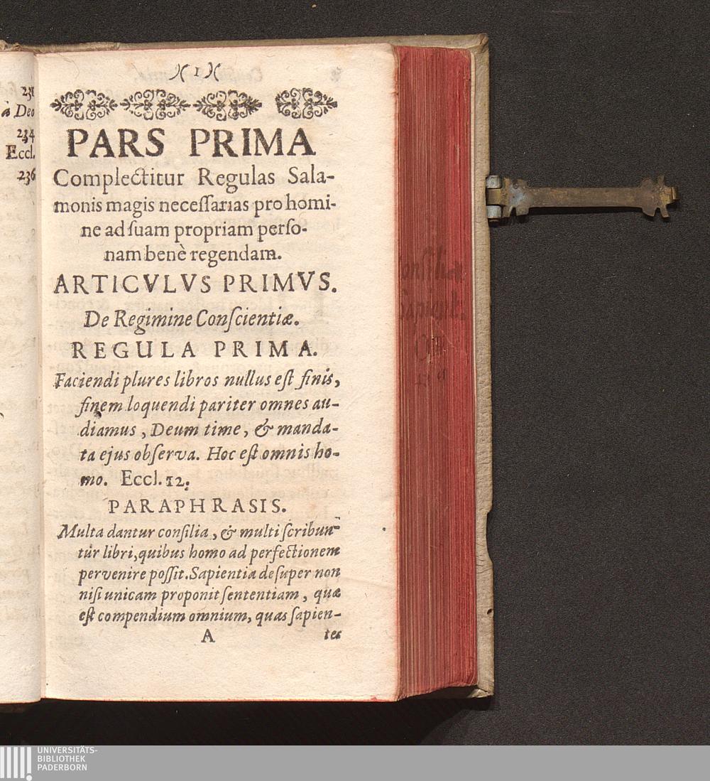 Pars Prima Complectitur Regulas Salomonis magis necessarias pro Homine ad suam propriam[...]
