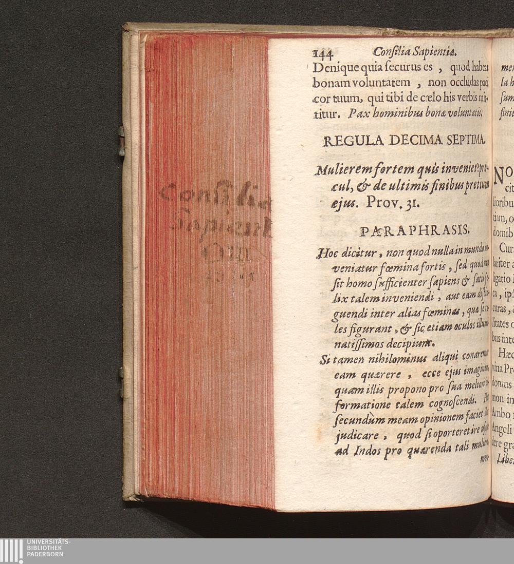 Continuatio || Consiliorum || Sapientiæ, || Sive || Axiomatum || Salomonis