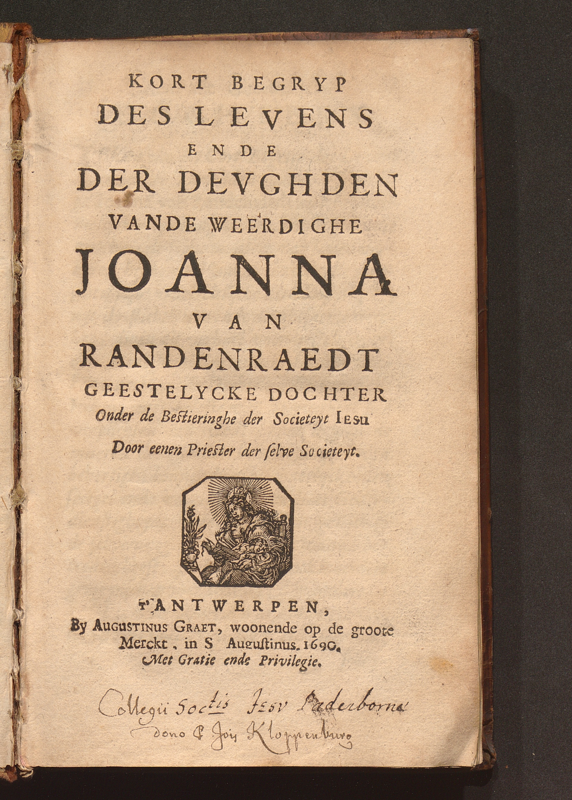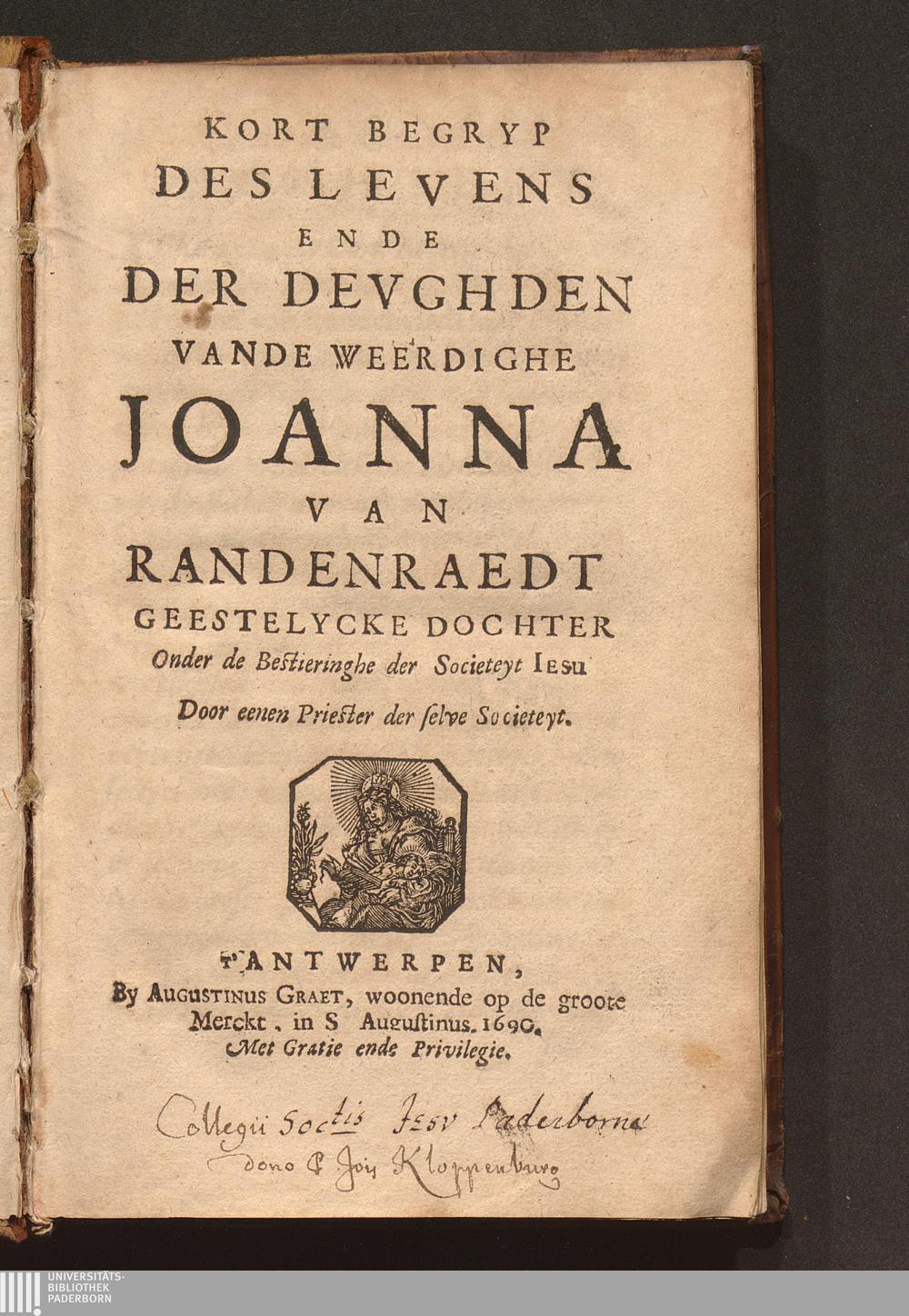 Kort Begryp Des Levens Ende Der Devghden Vande Weerdighe Joanna van Randenraedt Geestelycke Dochter Onder de Bestieringhe der Societeyt Iesu / Door eenen Priester der selve Societeyt