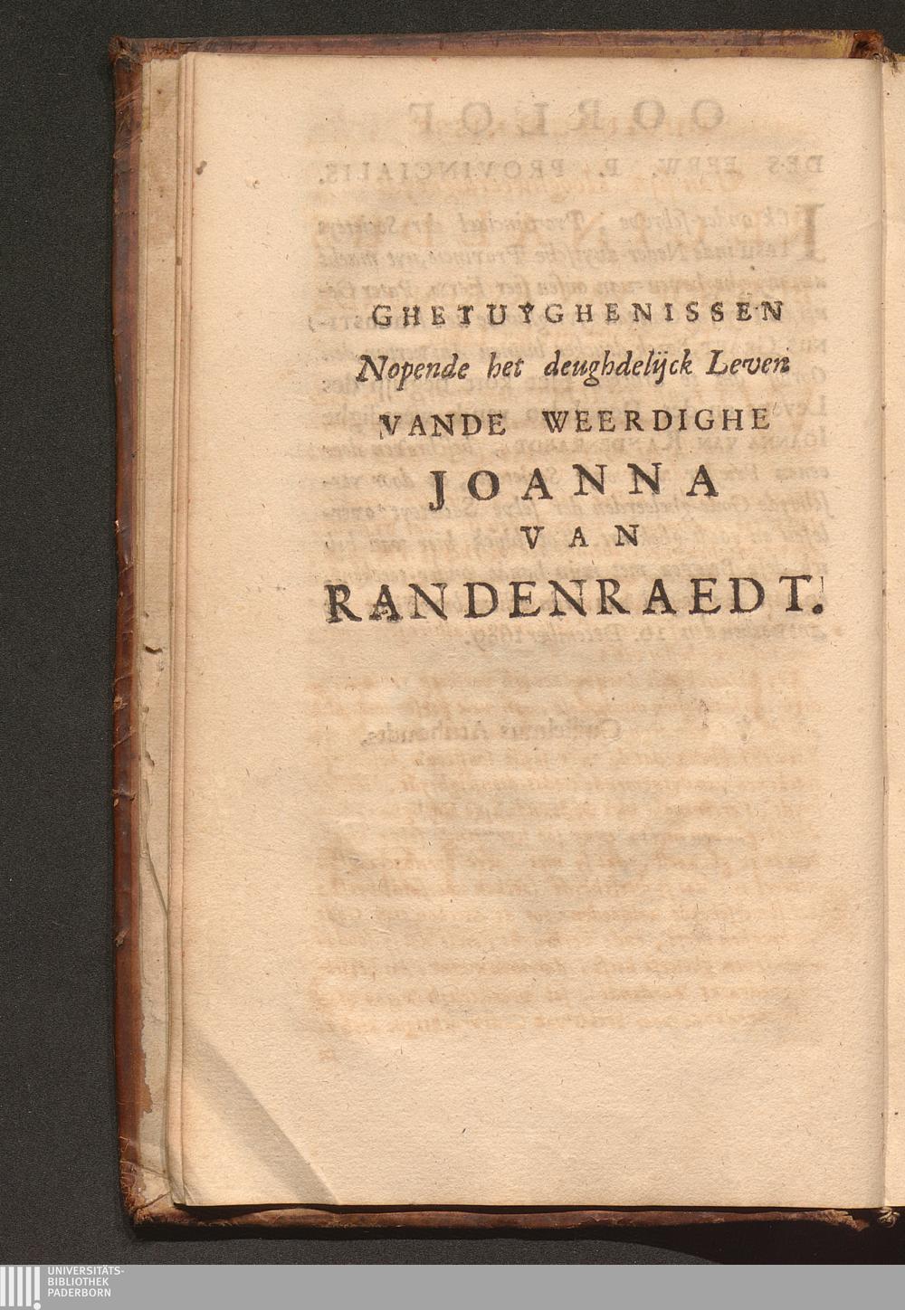 Kort Begryp Des Levens Ende Der Devghden Vande Weerdighe Joanna van Randenraedt Geestelycke Dochter Onder de Bestieringhe der Societeyt Iesu / Door eenen Priester der selve Societeyt