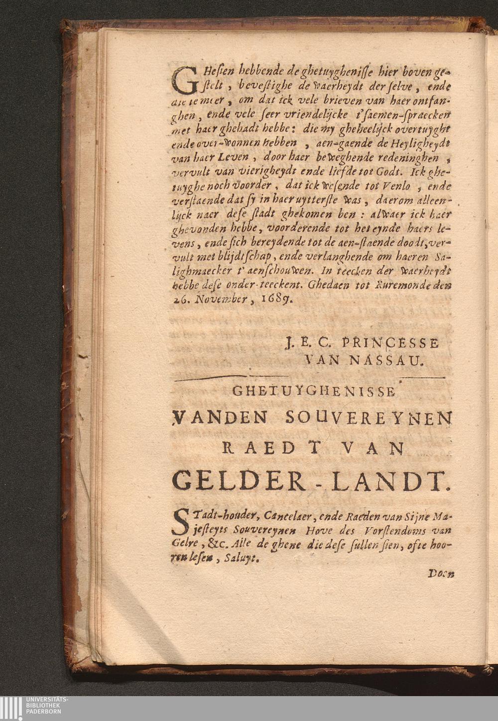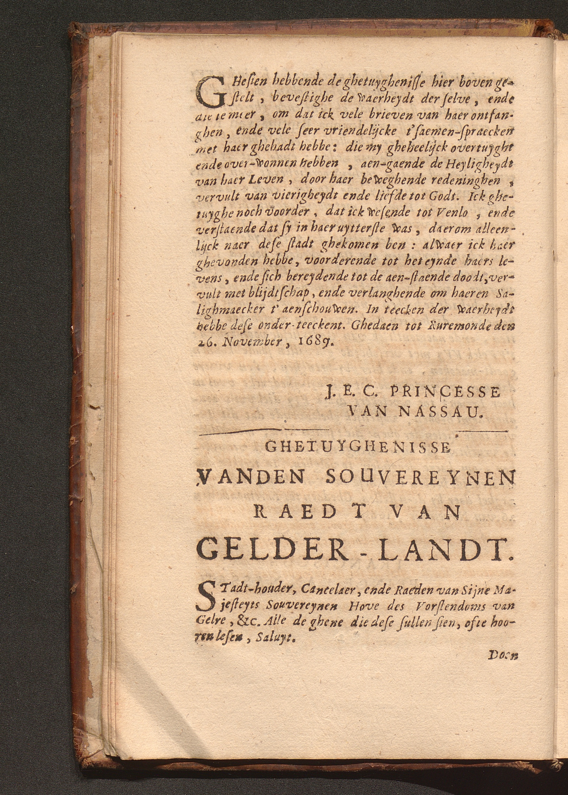 Ghetuyghenisse van den Souvereynen Raedt van Gelder-landt.