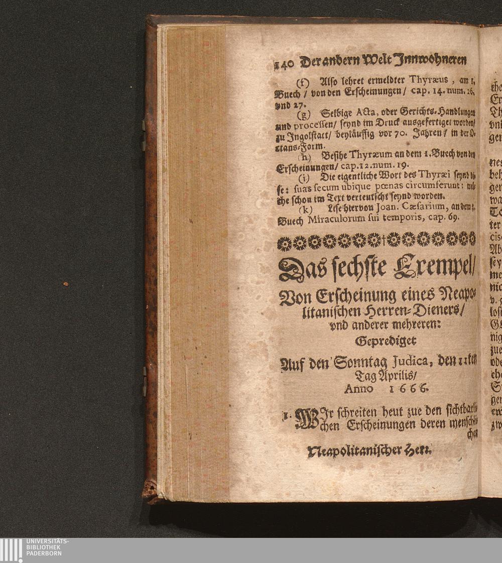 Incolarum Alterius Mundi Phænomena Historica. Das ist: Der Jnnwohneren der andern Welt sichtbarliche Erscheinungen / Durch R. P. Joannem Bisselium, der Societet Jesu Priestern Jn Fasten-Exempeln zu Dillingen/ in der Academischen Kirchen der Societet Jesu Predigweiß fürgestellt: Vnd jetzo in den Druck übergeben