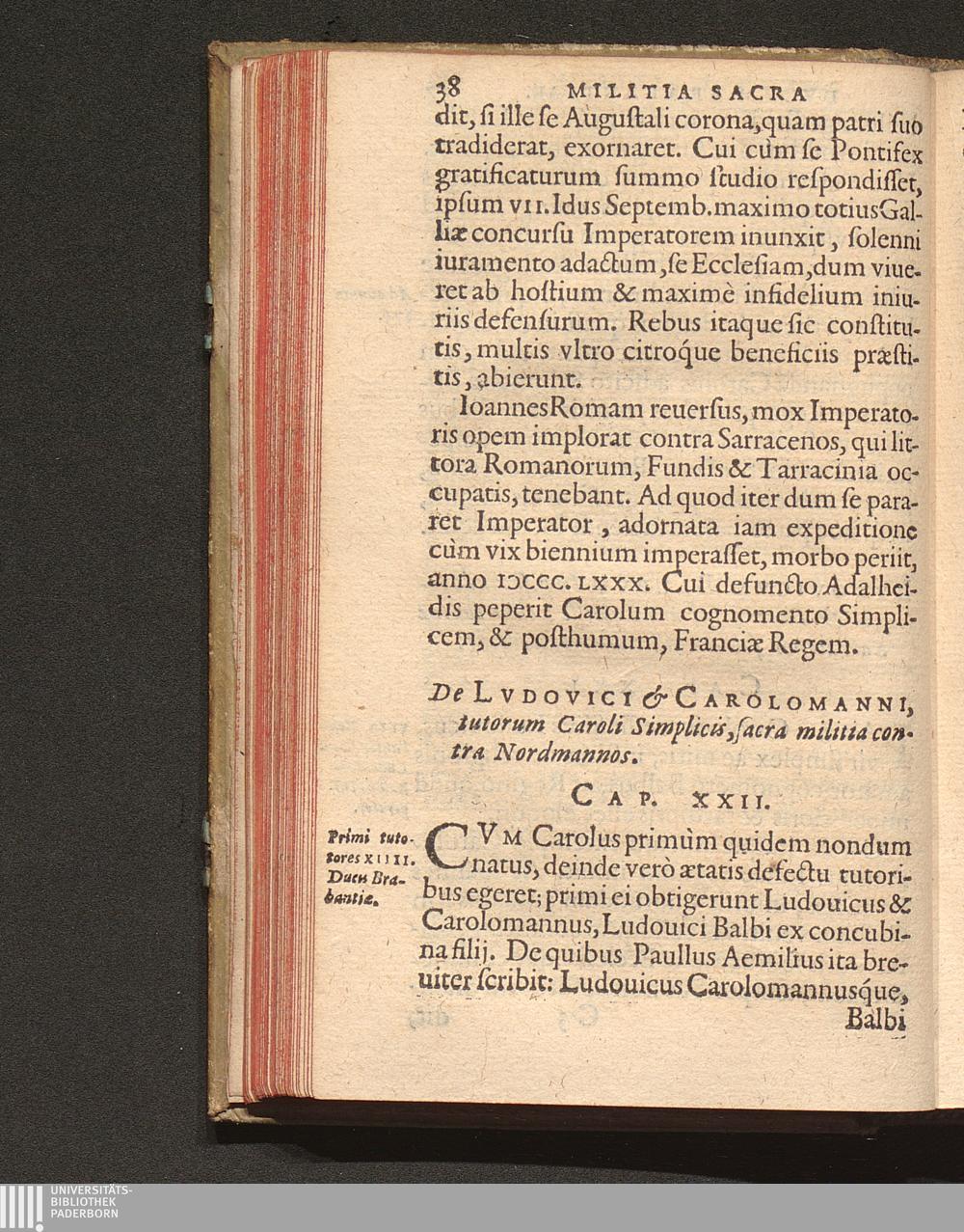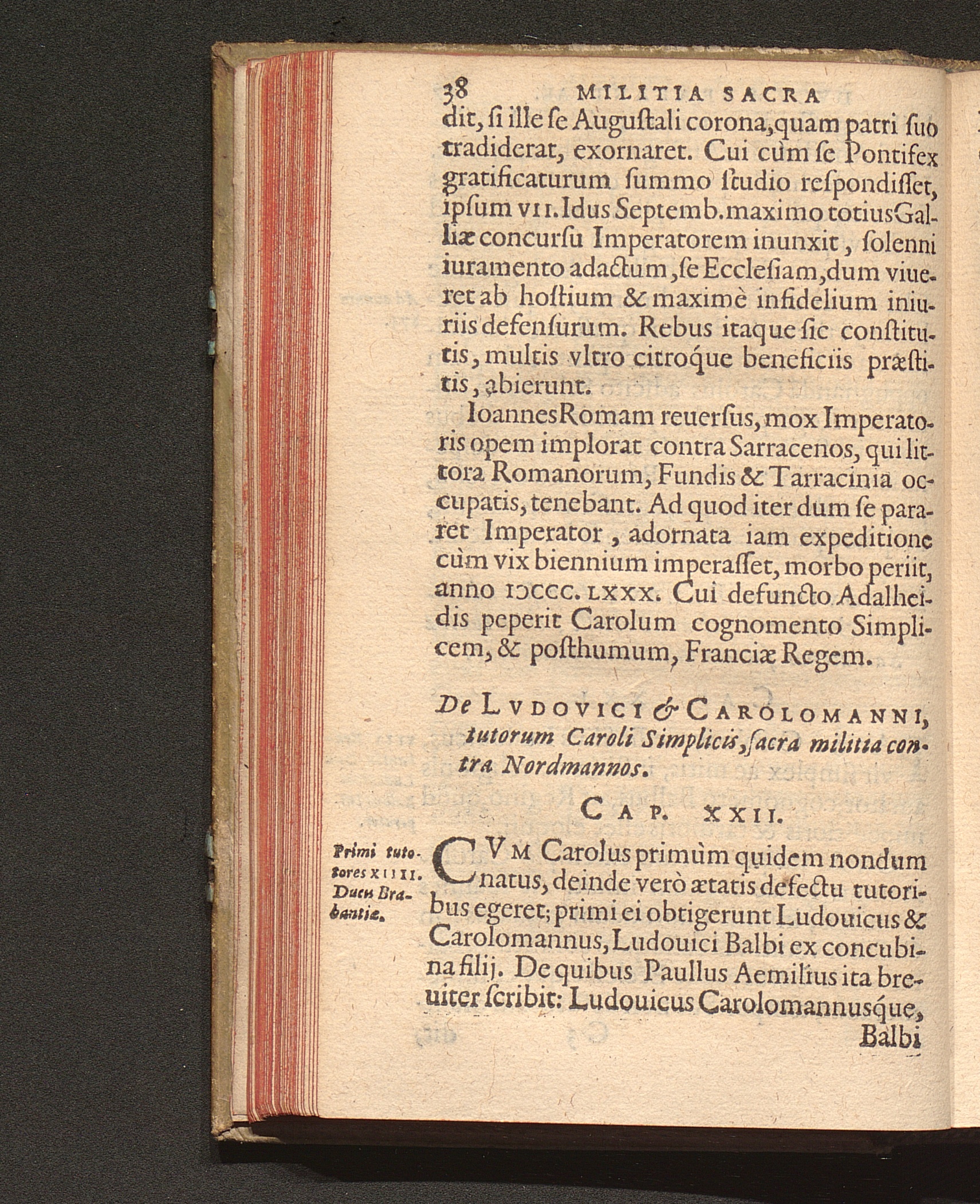 Militia Sacra || Dvcvm Et Principvm || Brabantiæ,|| / Auctore Ioanne Molano, S. Theol.|| in Academia Lovan: Doctore.|| Adiectae sunt ad huius historiæ || Illustrationem Annotationes || M. Petri Louwij Syl-||væducensis.||