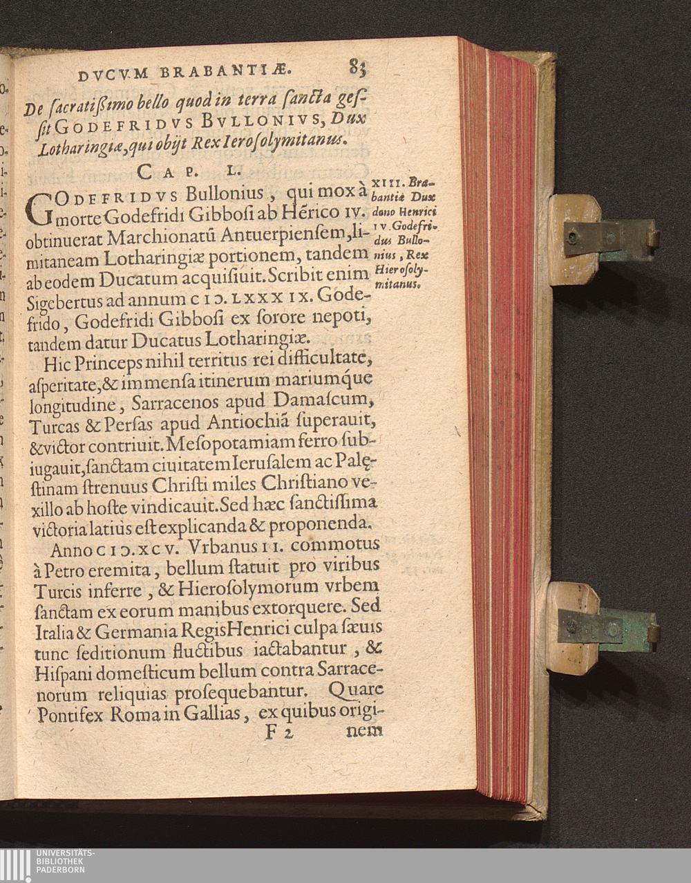 Militia Sacra || Dvcvm Et Principvm || Brabantiæ,|| / Auctore Ioanne Molano, S. Theol.|| in Academia Lovan: Doctore.|| Adiectae sunt ad huius historiæ || Illustrationem Annotationes || M. Petri Louwij Syl-||væducensis.||