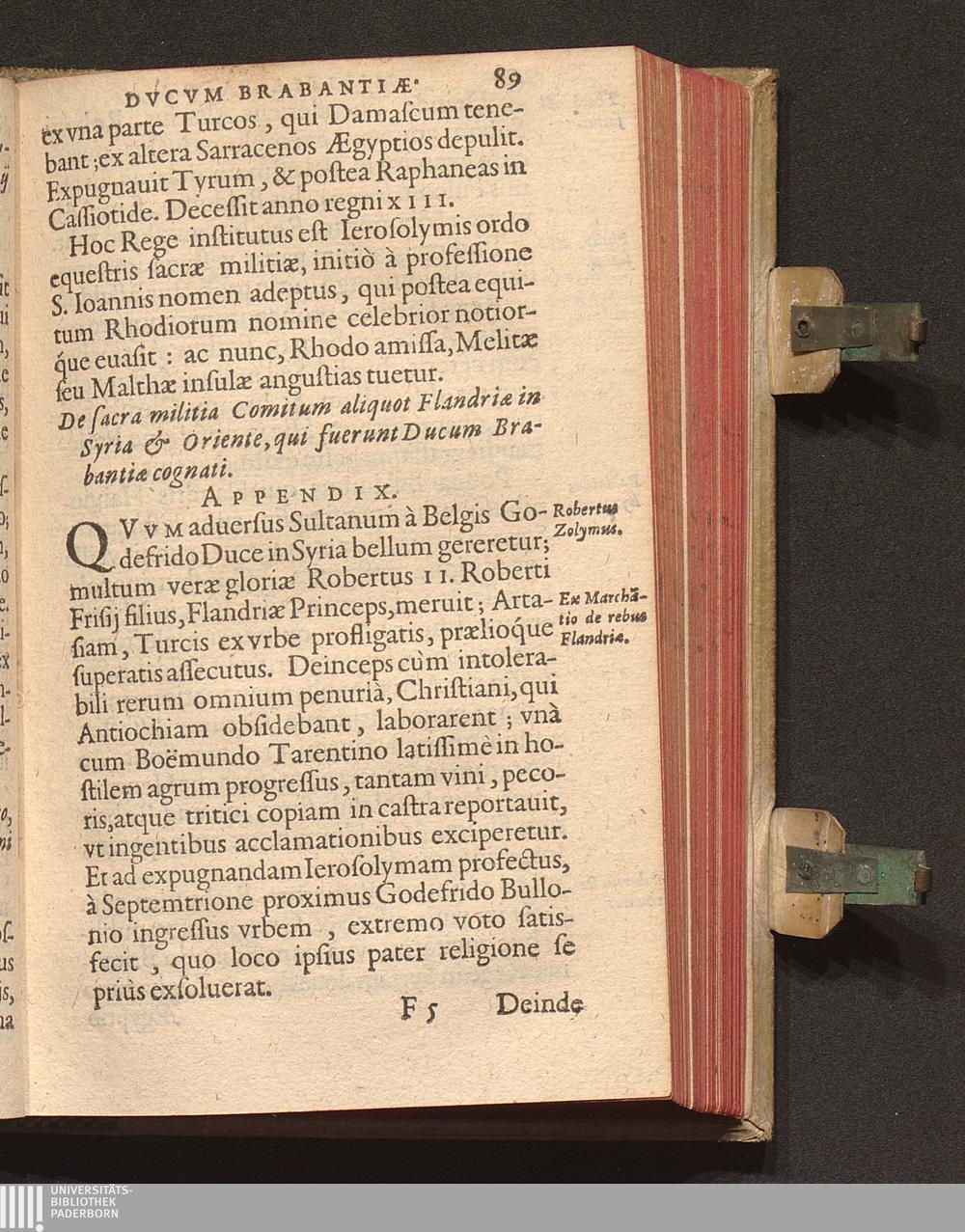 Militia Sacra || Dvcvm Et Principvm || Brabantiæ,|| / Auctore Ioanne Molano, S. Theol.|| in Academia Lovan: Doctore.|| Adiectae sunt ad huius historiæ || Illustrationem Annotationes || M. Petri Louwij Syl-||væducensis.||
