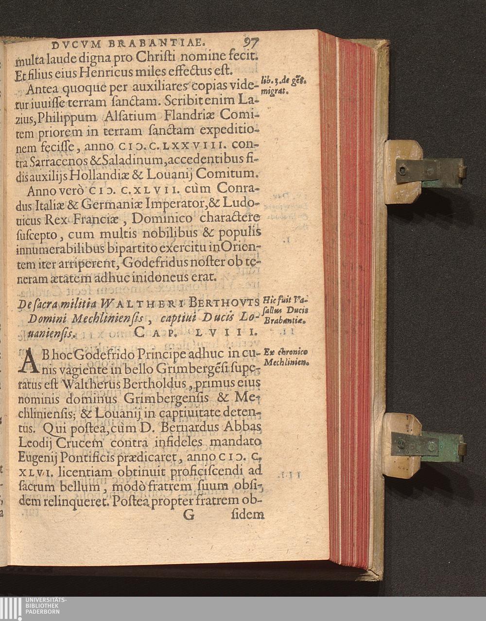 Militia Sacra || Dvcvm Et Principvm || Brabantiæ,|| / Auctore Ioanne Molano, S. Theol.|| in Academia Lovan: Doctore.|| Adiectae sunt ad huius historiæ || Illustrationem Annotationes || M. Petri Louwij Syl-||væducensis.||