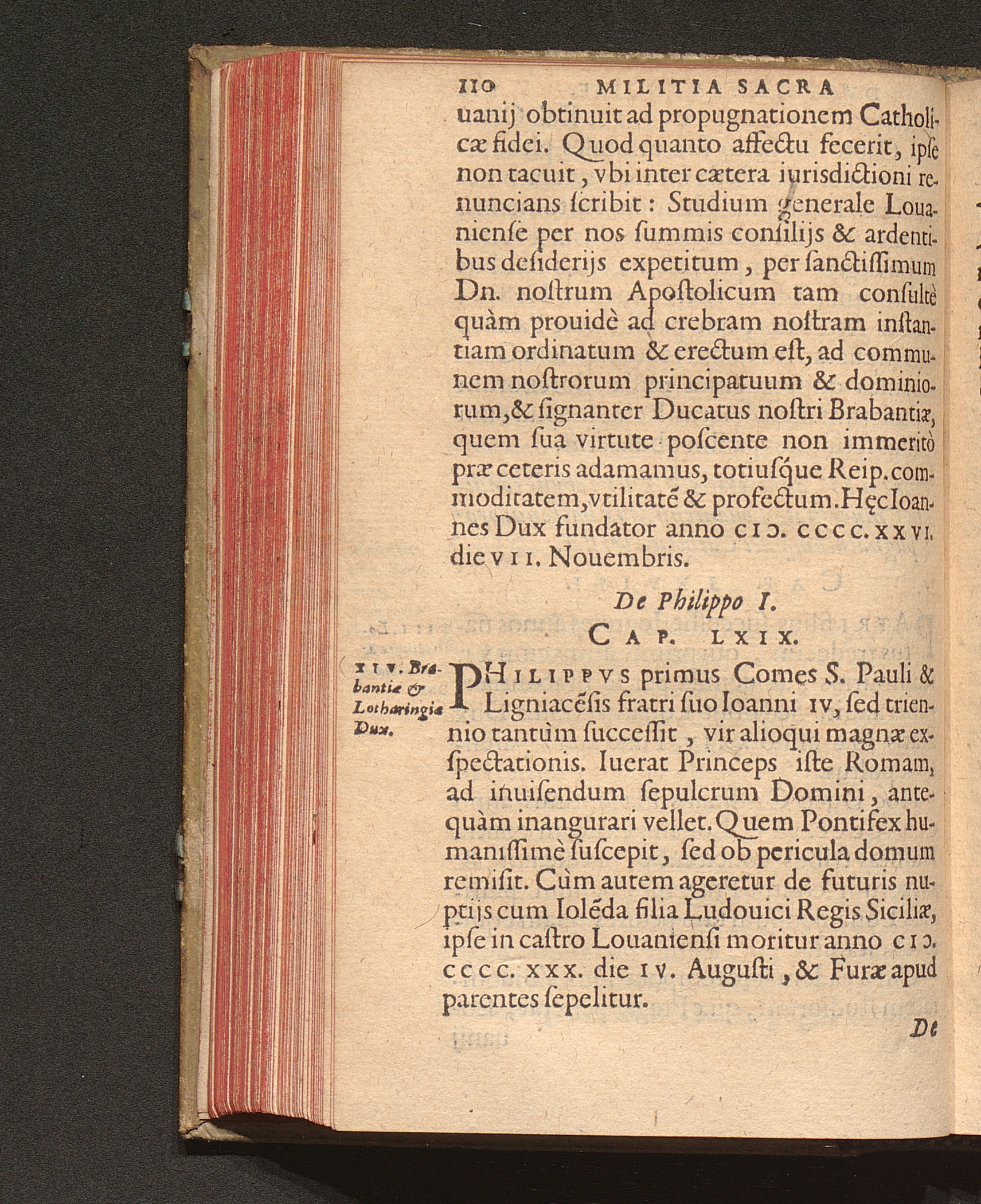 Militia Sacra || Dvcvm Et Principvm || Brabantiæ,|| / Auctore Ioanne Molano, S. Theol.|| in Academia Lovan: Doctore.|| Adiectae sunt ad huius historiæ || Illustrationem Annotationes || M. Petri Louwij Syl-||væducensis.||