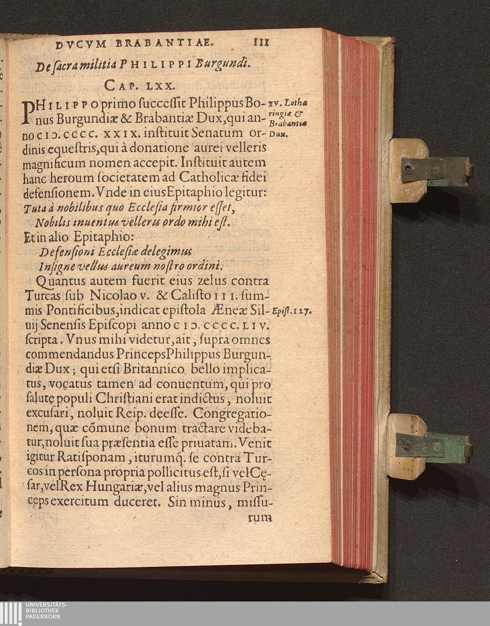 Militia Sacra || Dvcvm Et Principvm || Brabantiæ,|| / Auctore Ioanne Molano, S. Theol.|| in Academia Lovan: Doctore.|| Adiectae sunt ad huius historiæ || Illustrationem Annotationes || M. Petri Louwij Syl-||væducensis.||