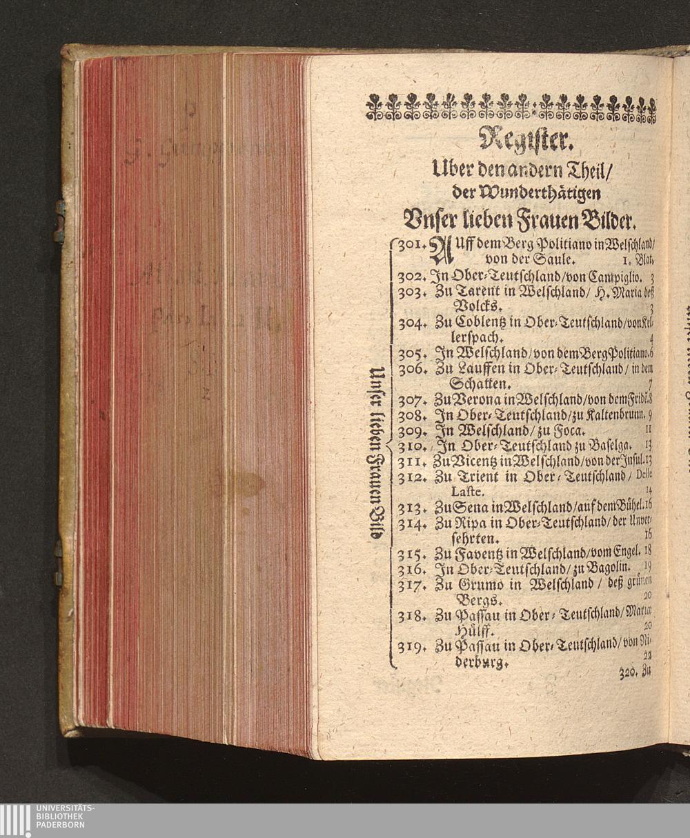 Register. Uber den andern Theil/ der Wunderthätigen Unser lieben Frauen Bilder.