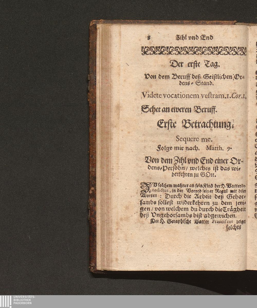 Zehen-Tägige Erspieglung Oder Ernewerung deß Geists : Jn welcher ein Gottliebende Seel durch Die 10. Tägige Einsamme/ in dem dreyfachen Spiegel der Reinigung/ Erleuchtung vnd Vereinbahrung sich kan ersehen ... / auß den Lehren der HH. Vätter gezogen/ vnd fürgestellt. Durch R. P. Marianum Schott, Conventual deß Fürstlichen Gottshauß Einsidlen Ordens deß H. V. Benedicti