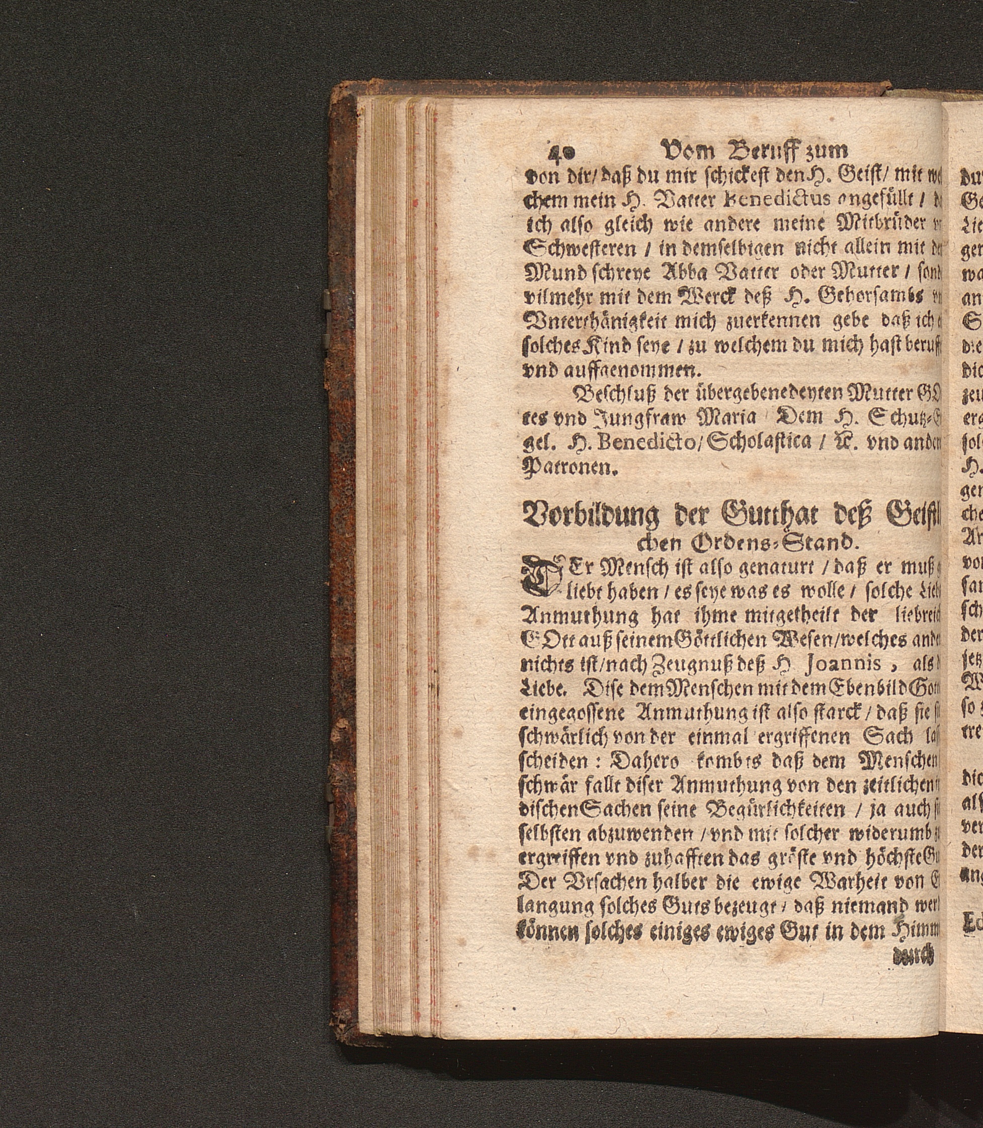 Zehen-Tägige Erspieglung Oder Ernewerung deß Geists : Jn welcher ein Gottliebende Seel durch Die 10. Tägige Einsamme/ in dem dreyfachen Spiegel der Reinigung/ Erleuchtung vnd Vereinbahrung sich kan ersehen ... / auß den Lehren der HH. Vätter gezogen/ vnd fürgestellt. Durch R. P. Marianum Schott, Conventual deß Fürstlichen Gottshauß Einsidlen Ordens deß H. V. Benedicti