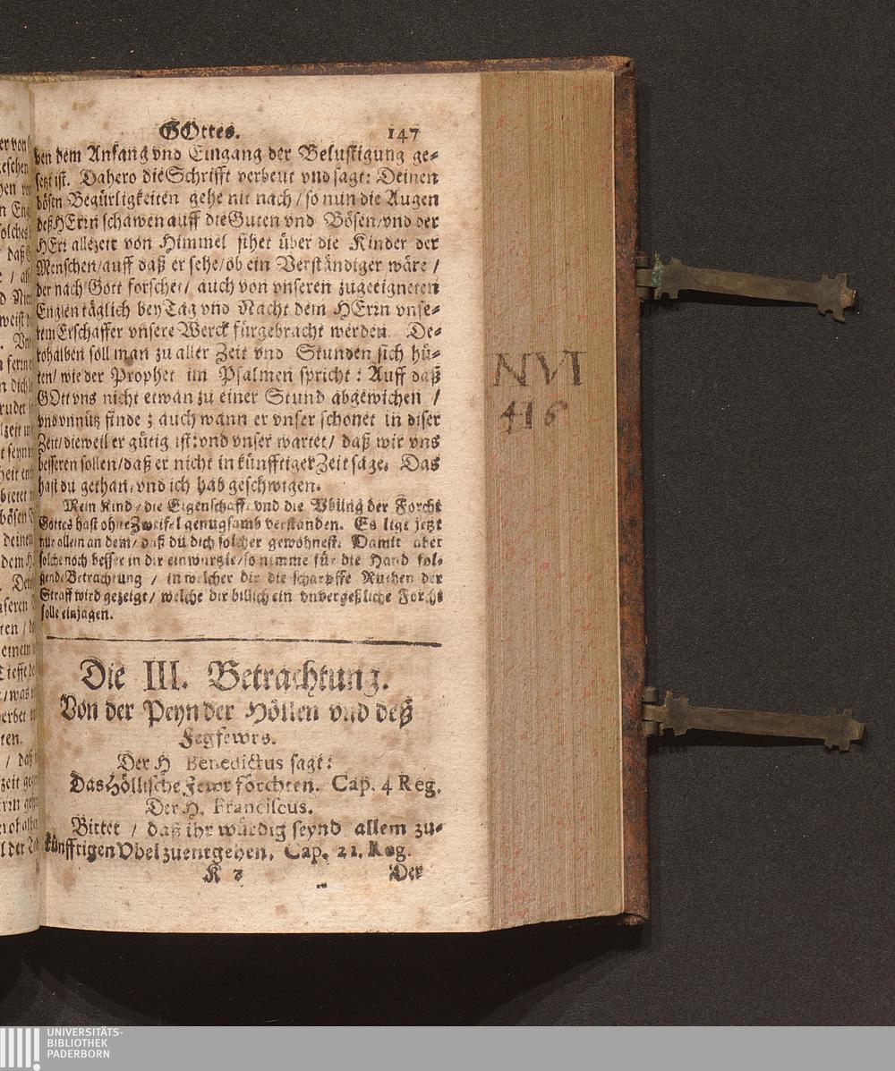 Zehen-Tägige Erspieglung Oder Ernewerung deß Geists : Jn welcher ein Gottliebende Seel durch Die 10. Tägige Einsamme/ in dem dreyfachen Spiegel der Reinigung/ Erleuchtung vnd Vereinbahrung sich kan ersehen ... / auß den Lehren der HH. Vätter gezogen/ vnd fürgestellt. Durch R. P. Marianum Schott, Conventual deß Fürstlichen Gottshauß Einsidlen Ordens deß H. V. Benedicti