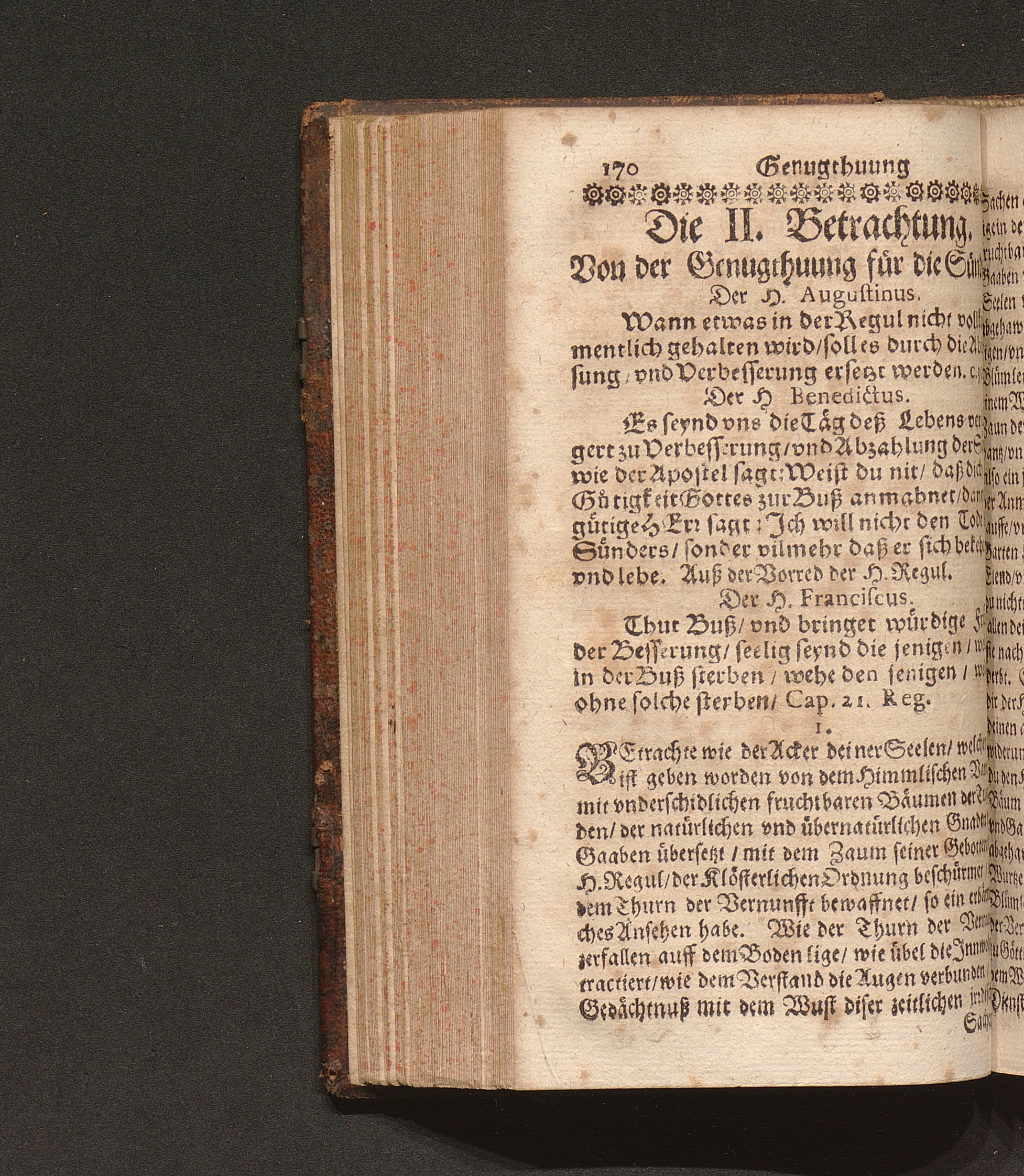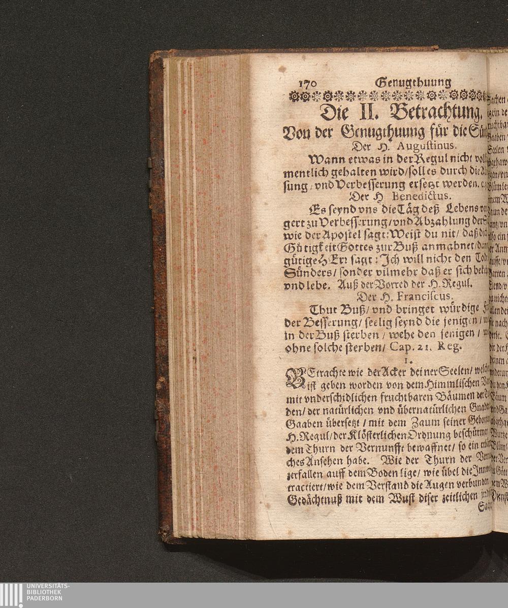 Zehen-Tägige Erspieglung Oder Ernewerung deß Geists : Jn welcher ein Gottliebende Seel durch Die 10. Tägige Einsamme/ in dem dreyfachen Spiegel der Reinigung/ Erleuchtung vnd Vereinbahrung sich kan ersehen ... / auß den Lehren der HH. Vätter gezogen/ vnd fürgestellt. Durch R. P. Marianum Schott, Conventual deß Fürstlichen Gottshauß Einsidlen Ordens deß H. V. Benedicti